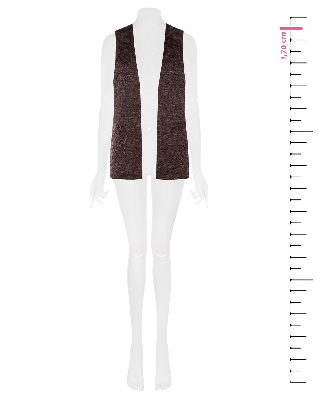 Layering sem mangas de corte reto e fluido, pensado para acompanhar a silhueta com leveza. A renda floral confere uma textura refinada, enquanto a frente aberta e o corte longuette alongam a figura. Perfeito sobre tops, vestidos ou camisas para escritório, eventos e everyday chic.