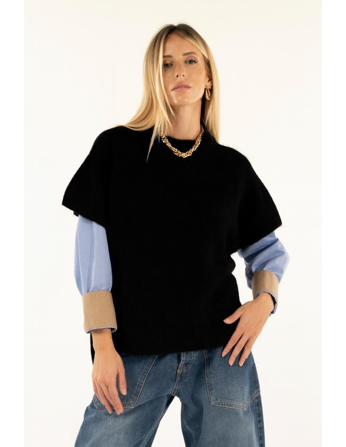 Top sem mangas com um corte macio e ligeiramente oversize, assinado Kontatto. Em mistura de lã escovada com efeito macio, oferece calor e conforto. Gola redonda limpa e ombros caídos criam uma silhueta descontraída que alonga. Perfeita sobre camisas ou golas altas para o escritório e para o dia a dia urbano.