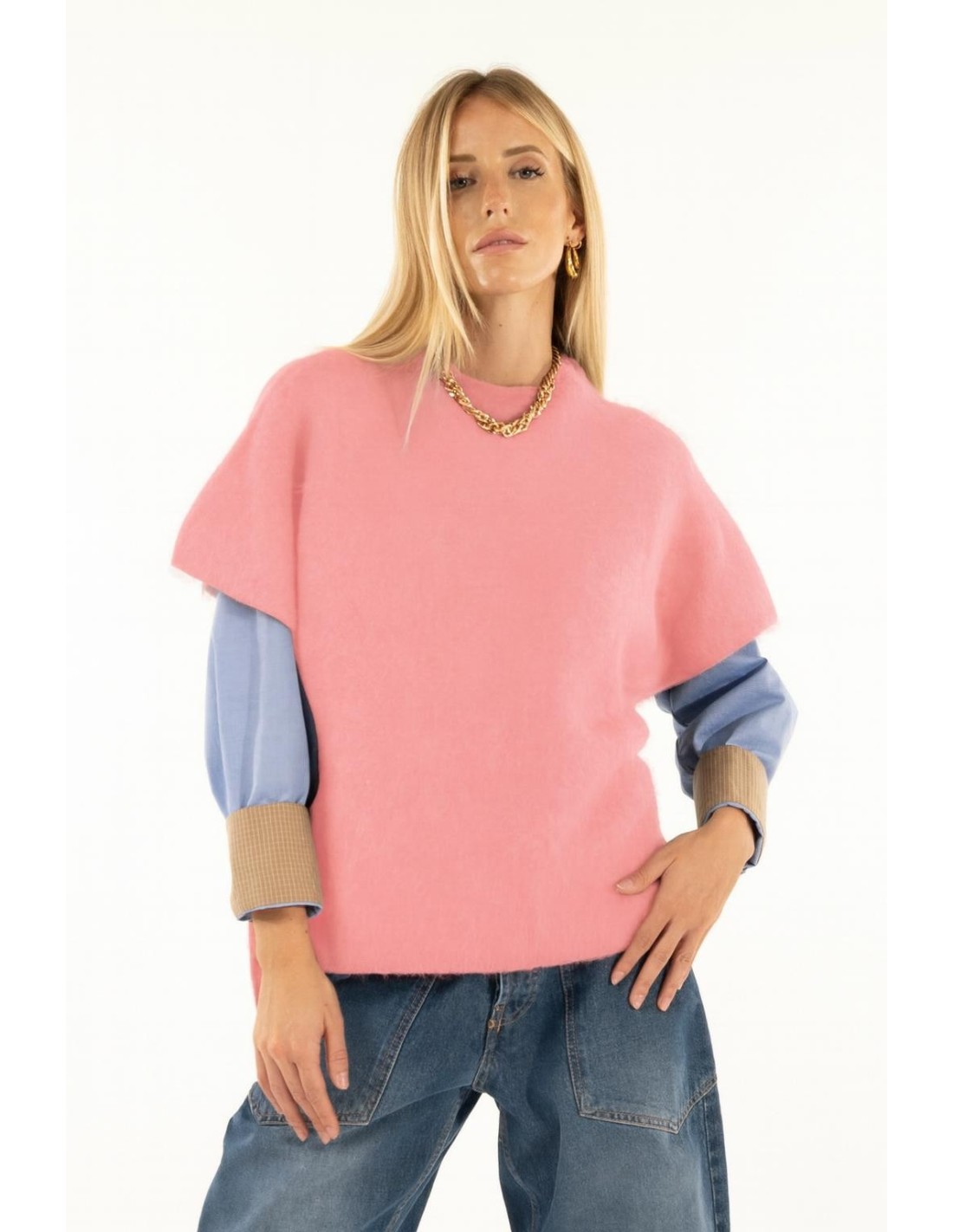 Top sem mangas com um corte macio e ligeiramente oversize, assinado Kontatto. Em mistura de lã escovada com efeito macio, oferece calor e conforto. Gola redonda limpa e ombros caídos criam uma silhueta descontraída que alonga. Perfeita sobre camisas ou golas altas para o escritório e para o dia a dia urbano.