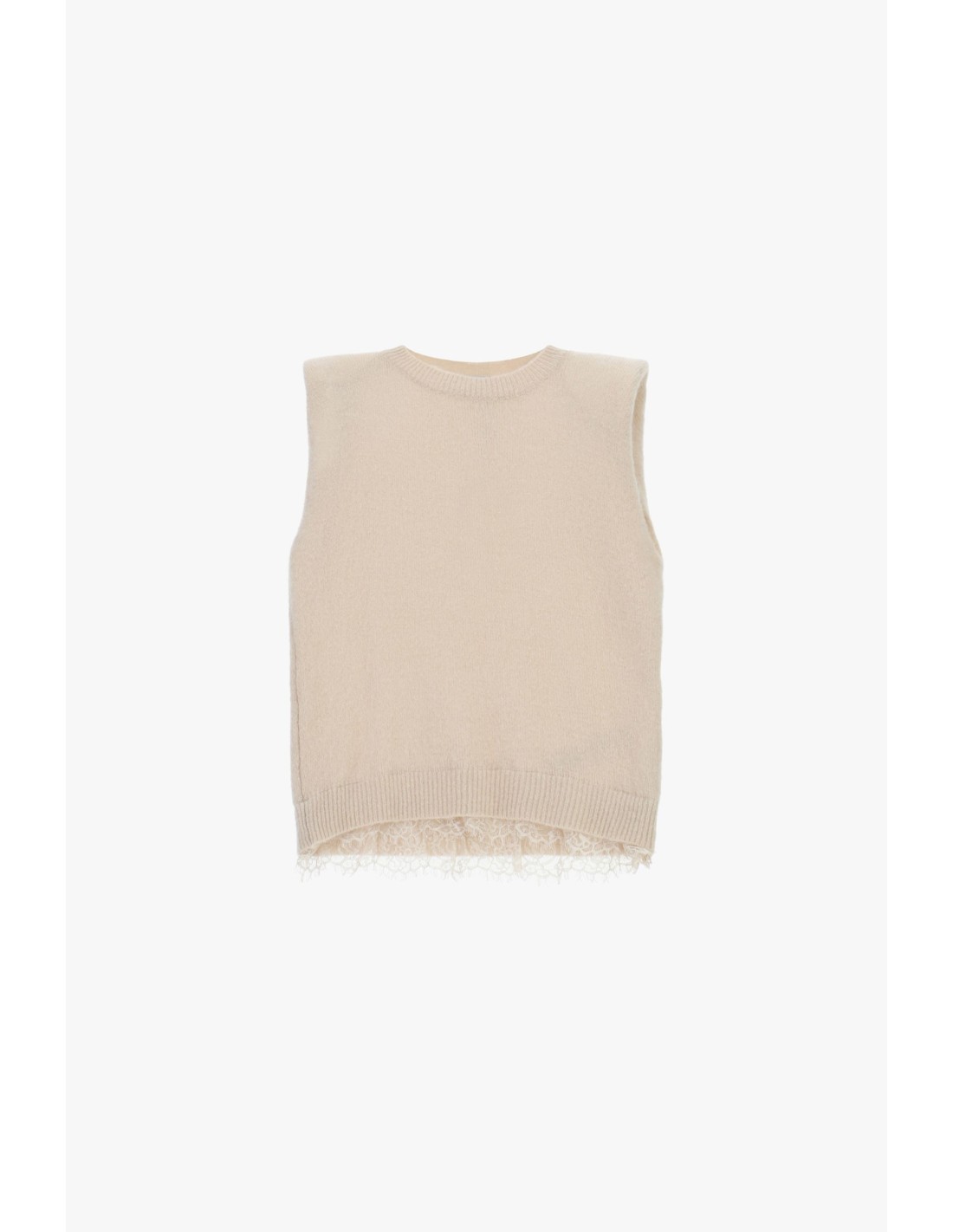 Colete sem mangas com acabamento em renda