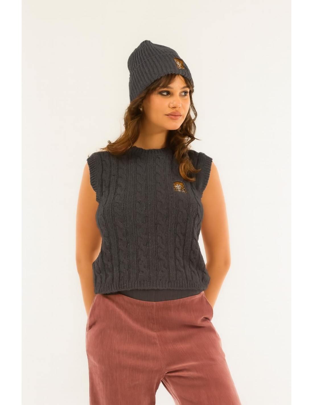 Um tecido refinado de elegância e suavidade: esta malha sem mangas acaricia a silhueta, dando-lhe um fascínio romântico e feminino. Perfeito para quem quer um toque de exclusividade no look do dia a dia.