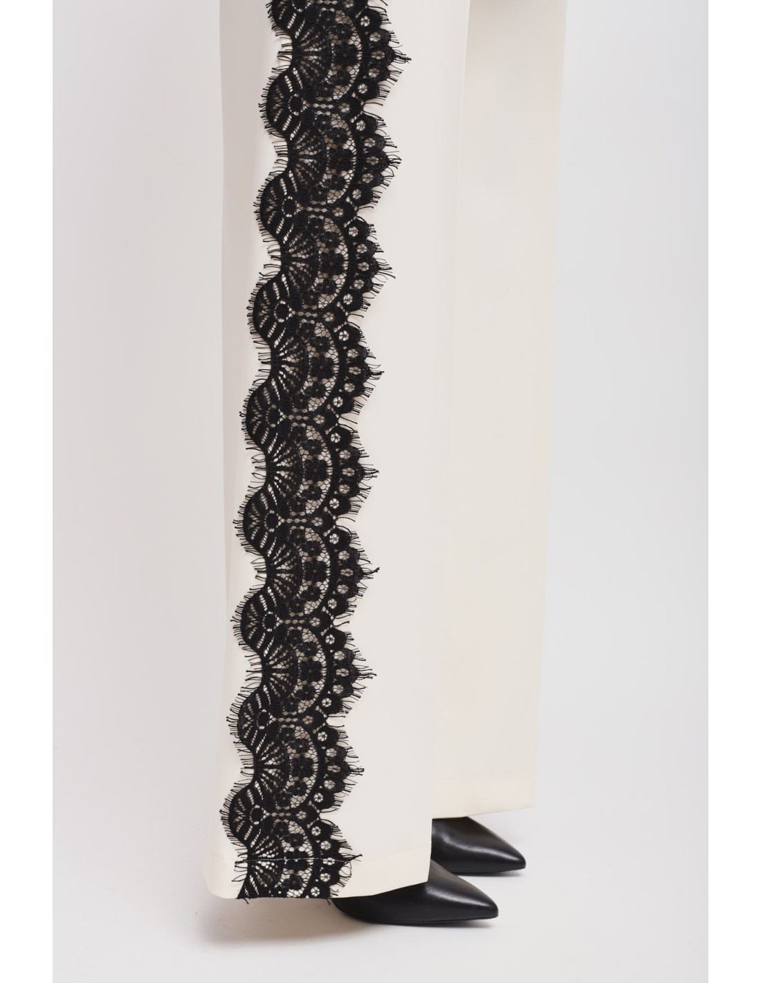 Conjunto com blazer de duplo peito e calças palazzo com renda Maryley