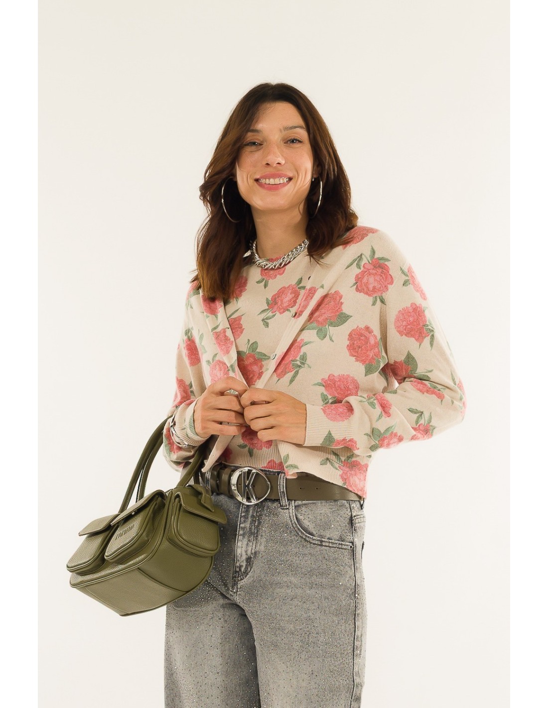 Cardigan Kontatto de corte regular e ligeiramente curto: acompanha a figura sem ser apertado. Malha fina e macia, agradável à pele. Os botões perolados e os rebordos micro canelados definem a linha; o estampado floral em toda a peça confere feminilidade. Ideal para o escritório com uma blusa ou para usar no dia a dia sobre calças de ganga e saias.