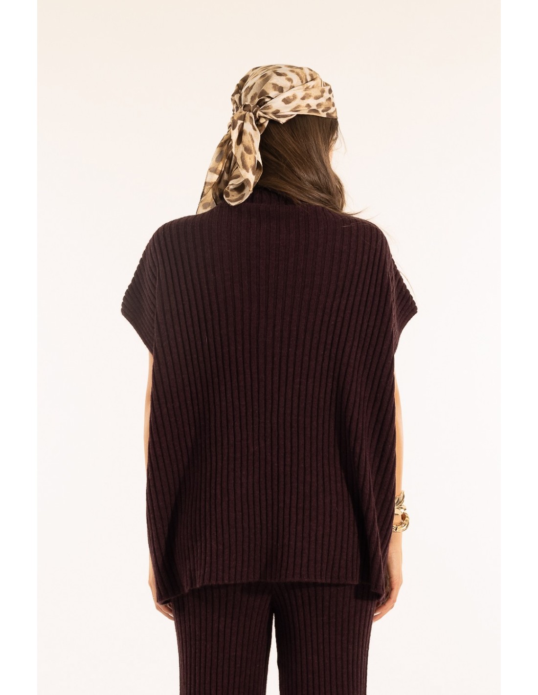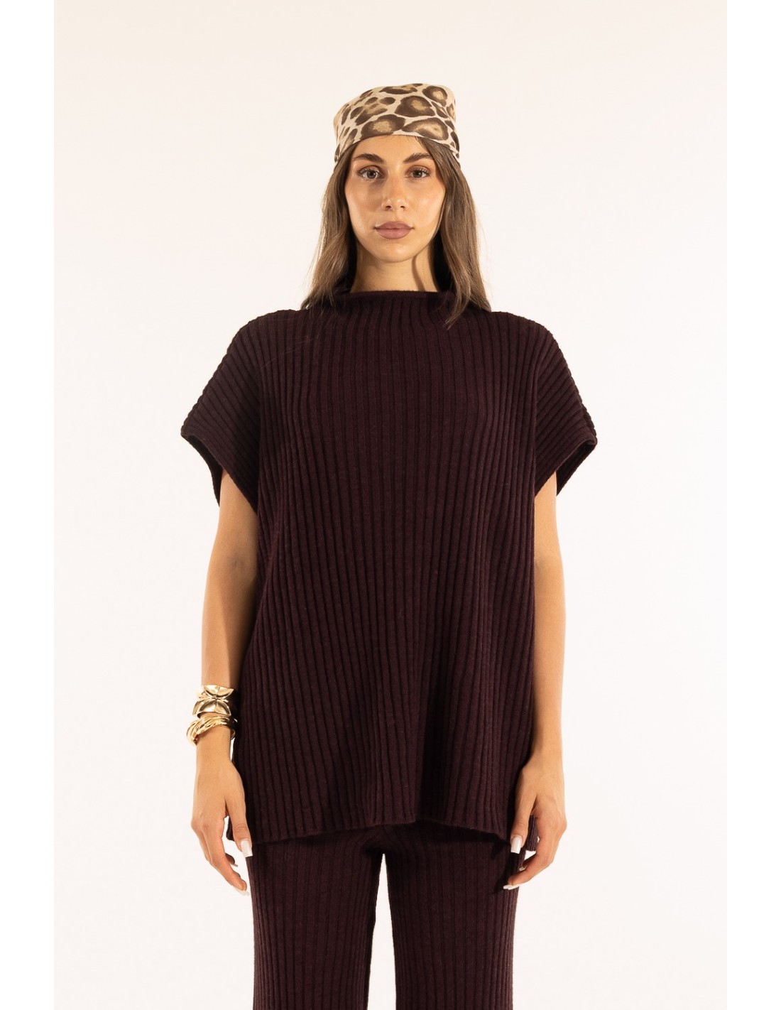Camisola oversize sem mangas by Kontatto: linha macia e fluida que valoriza a silhueta com conforto. Malha canelada macia, agradável para a pele. Gola ligeiramente alta e bainha assimétrica para um toque moderno. Perfeita com jeans ou calças wide para o escritório e o tempo livre.