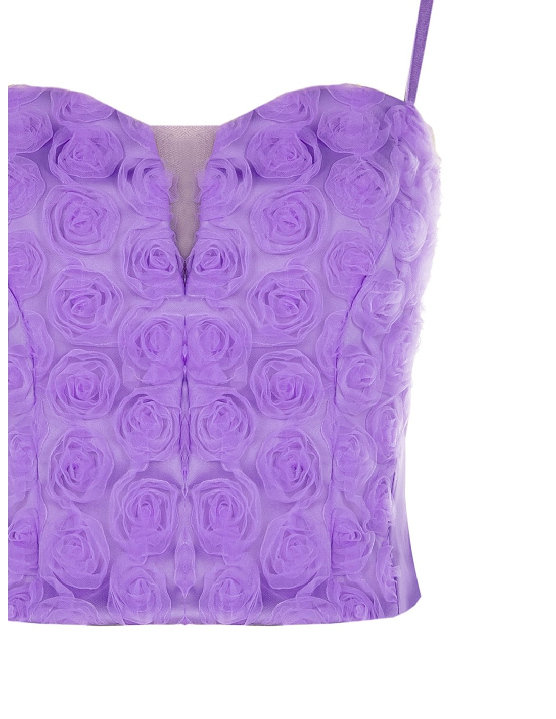 Crop Top Bustier Em Tule Com Rosas Rinascimento