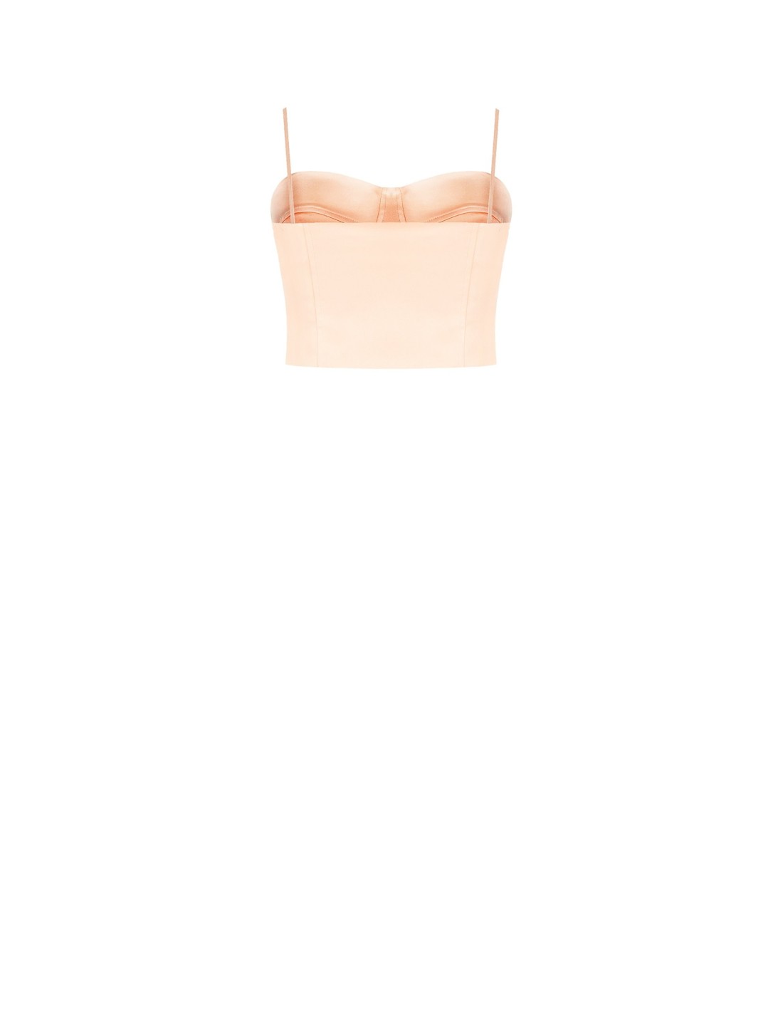 Top curto de corte justo e estruturado, em cetim com textura lisa e luminosa que valoriza a silhueta com conforto. O decote em coração com copas moldadas e as alças finas ajustáveis acrescentam feminilidade e suporte. Perfeito por baixo do blazer, do escritório à festa.