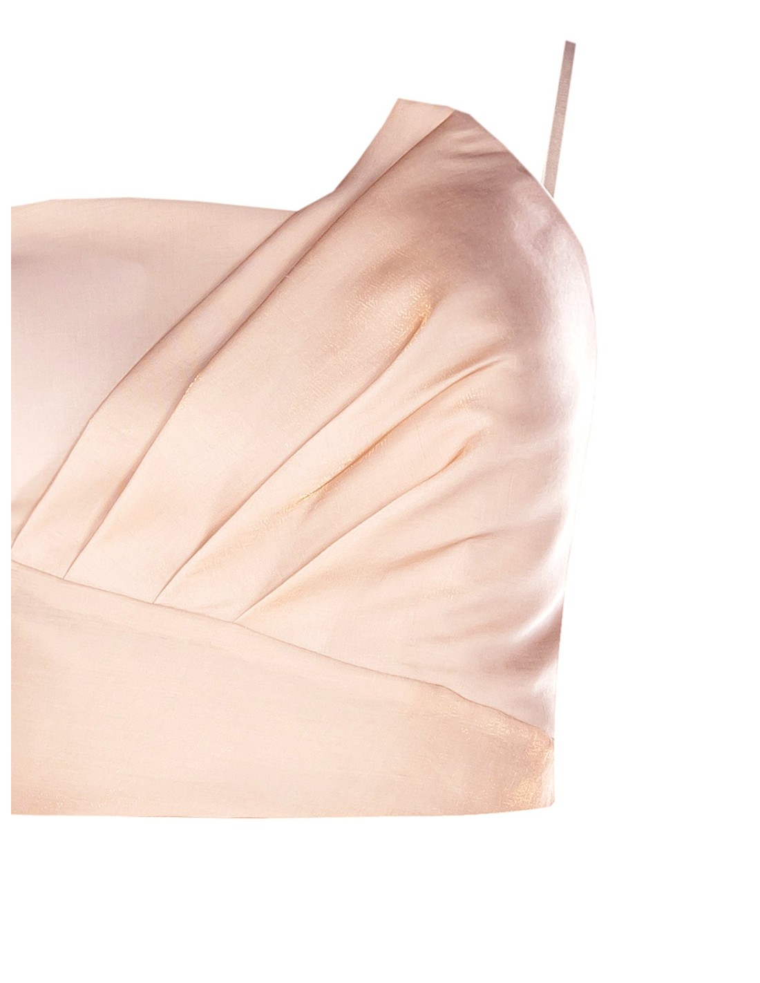 Top curto com uma modelagem justa que valoriza a silhueta com conforto e suporte. Em viscose de textura luminosa e fluida, destaca-se pelo decote assimétrico e drapeado no busto. Perfeito para festas, jantares especiais ou para dar carácter aos looks de noite.