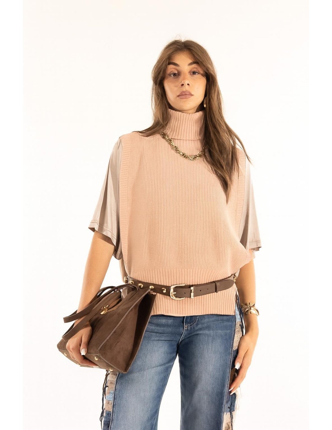 Kontatto assina um top sem mangas com gola alta, corte suave e boxy que valoriza a silhueta em camadas. Malha em canelado inglês em fio macio, agradável na pele. Ombros caídos e barra em canelado para definir a linha. Versátil do escritório ao dia a dia, perfeito sobre camisas ou vestidos.