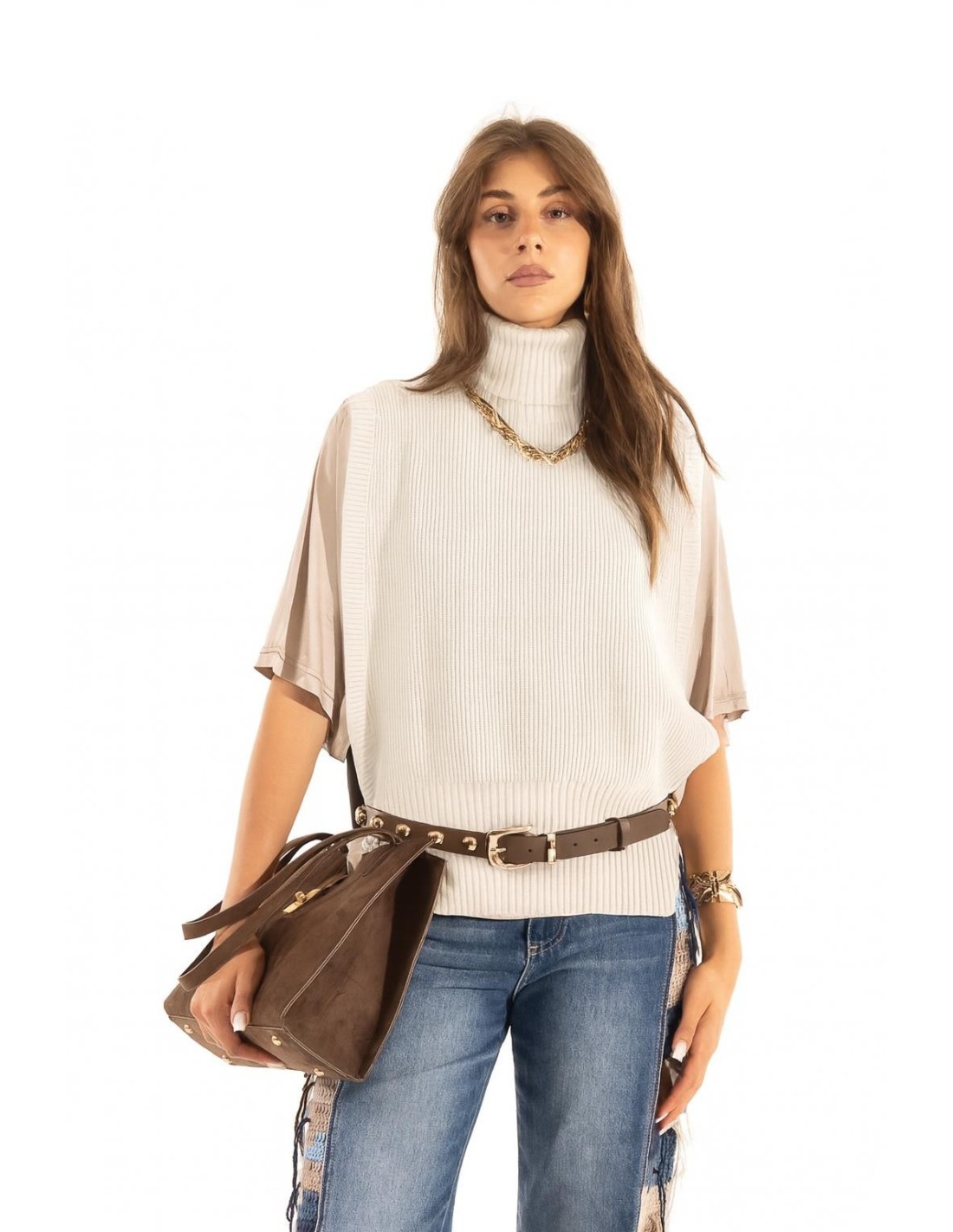 Kontatto assina um top sem mangas com gola alta, corte suave e boxy que valoriza a silhueta em camadas. Malha em canelado inglês em fio macio, agradável na pele. Ombros caídos e barra em canelado para definir a linha. Versátil do escritório ao dia a dia, perfeito sobre camisas ou vestidos.