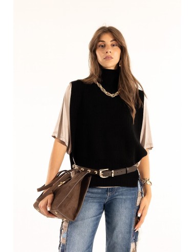 Kontatto assina um top sem mangas com gola alta, corte suave e boxy que valoriza a silhueta em camadas. Malha em canelado inglês em fio macio, agradável na pele. Ombros caídos e barra em canelado para definir a linha. Versátil do escritório ao dia a dia, perfeito sobre camisas ou vestidos.