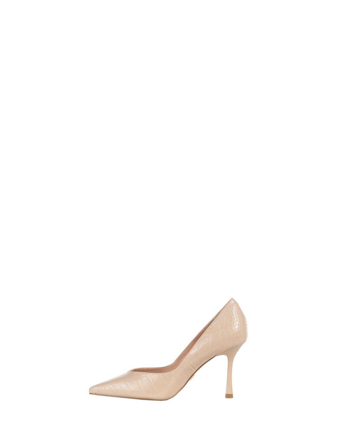 Pump Rinascimento de bico afunilado, em pele sintética com elegante acabamento croco. O salto afinado e o ajuste envolvente valorizam a silhueta, enquanto o logo metálico RR ilumina o calcanhar. Perfeita do escritório ao aperitivo, até às ocasiões especiais.