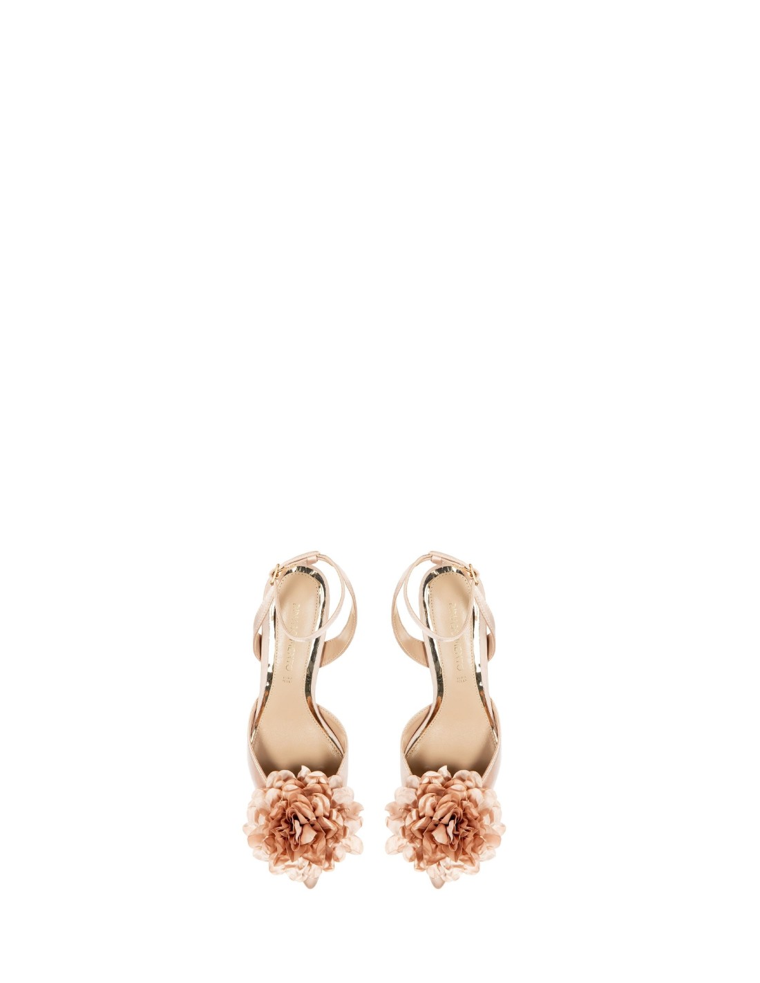 Décolleté slingback em cetim com salto baixo e flor de tecido Rinascimento