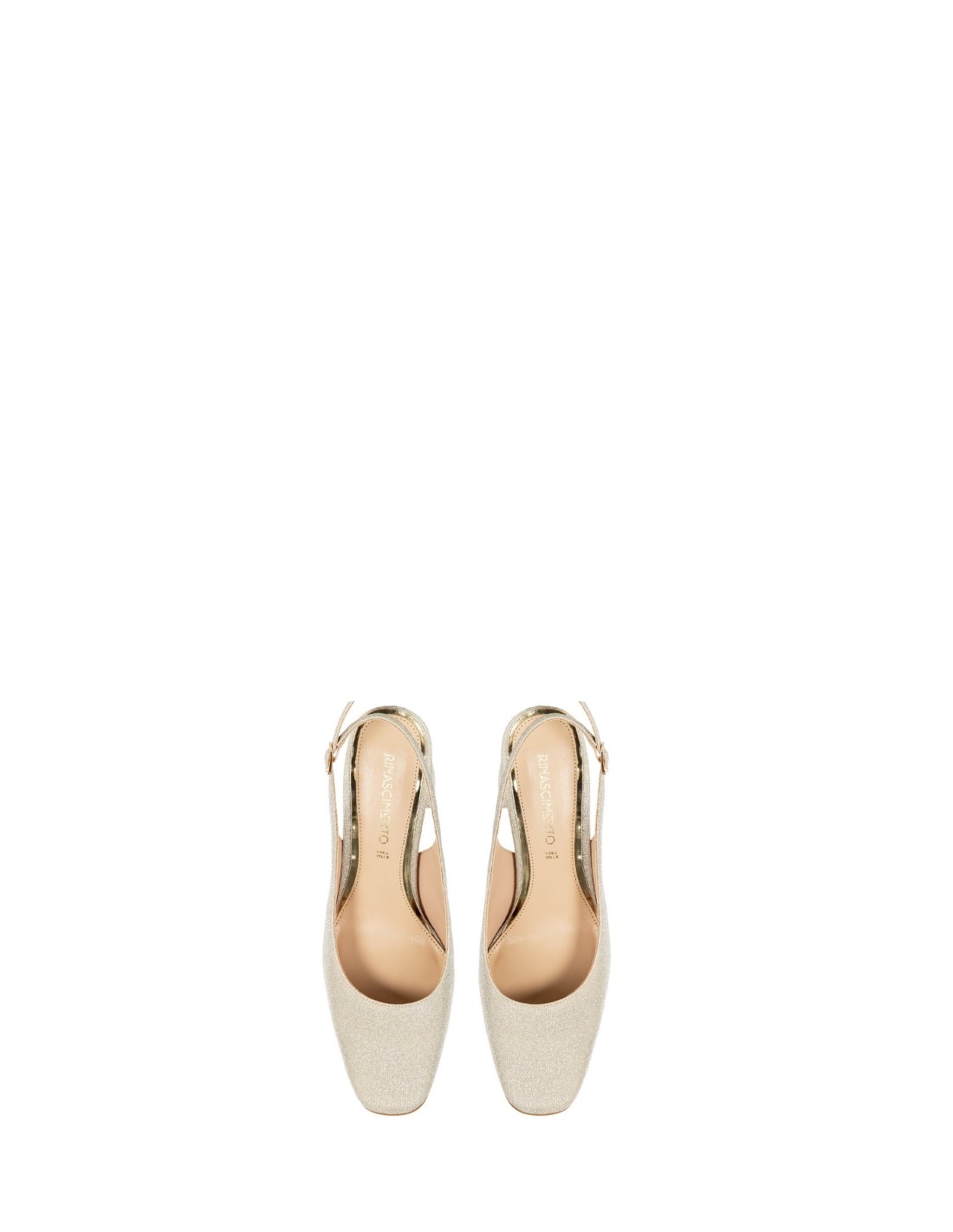 Décolleté Slingback Glitter Com Salto Alto E Biqueira Quadrada Rinascimento