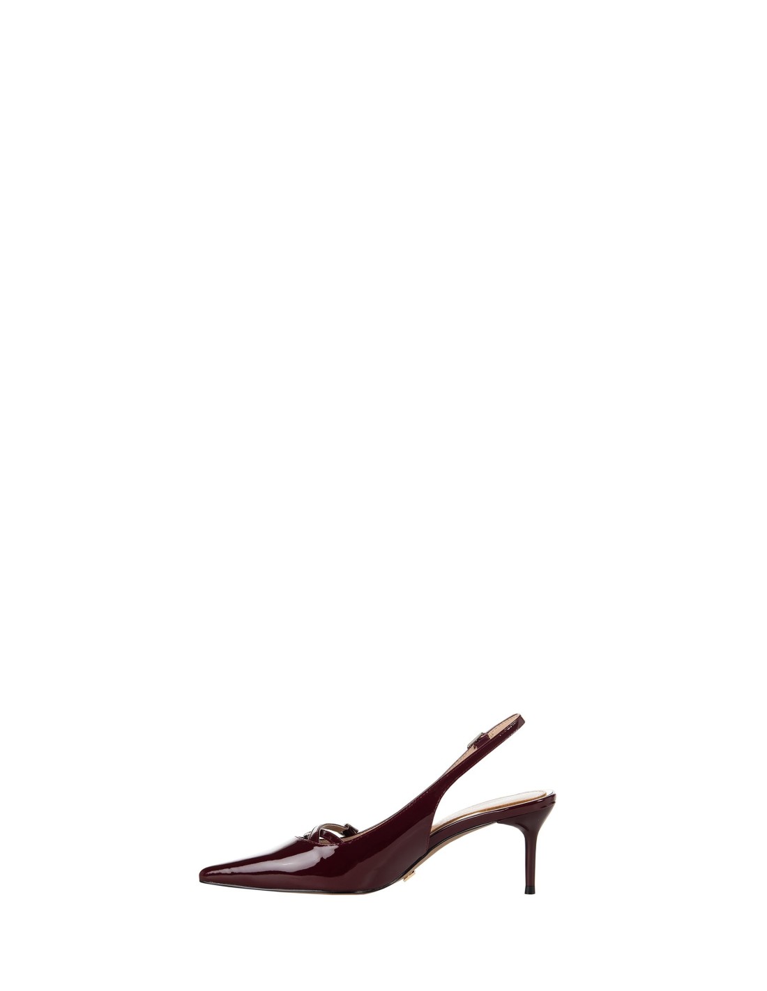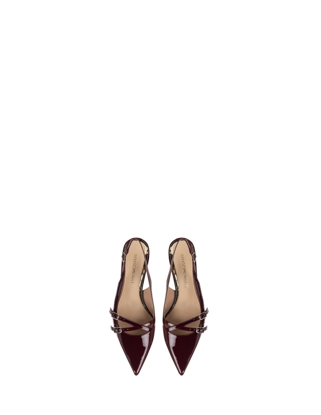 Decote Slingback em Couro Patenteado com Alça Cruzada Rinascimento