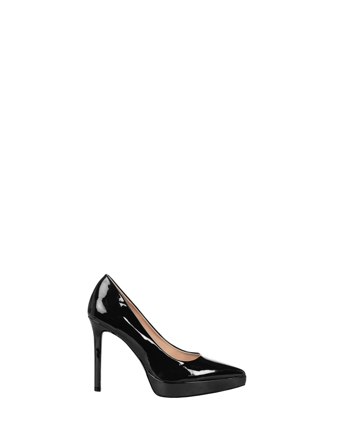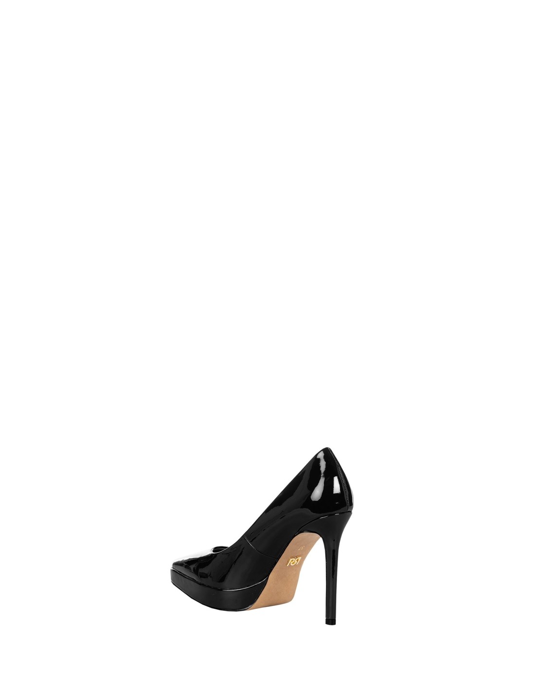 Sapatos de salto alto com um corte cónico que emagrece a silhueta. Topo brilhante com efeito de patente, forro macio para um conforto prolongado. A biqueira em forma de V e a plataforma discreta equilibram a altura do salto agulha. Perfeitos do escritório à hora do cocktail, conferem personalidade a fatos e vestidos Rinascimento.