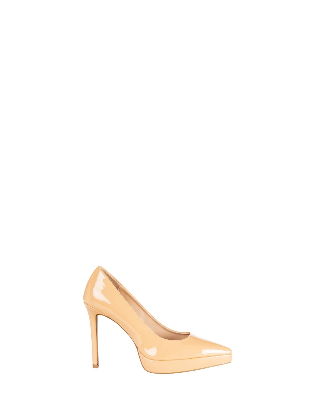 Sapatos de salto alto com um corte cónico que emagrece a silhueta. Topo brilhante com efeito de patente, forro macio para um conforto prolongado. A biqueira em forma de V e a plataforma discreta equilibram a altura do salto agulha. Perfeitos do escritório à hora do cocktail, conferem personalidade a fatos e vestidos Rinascimento.