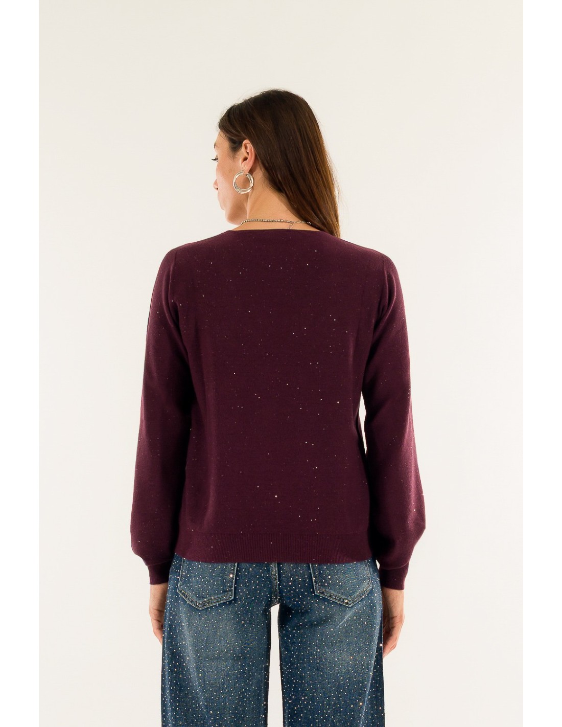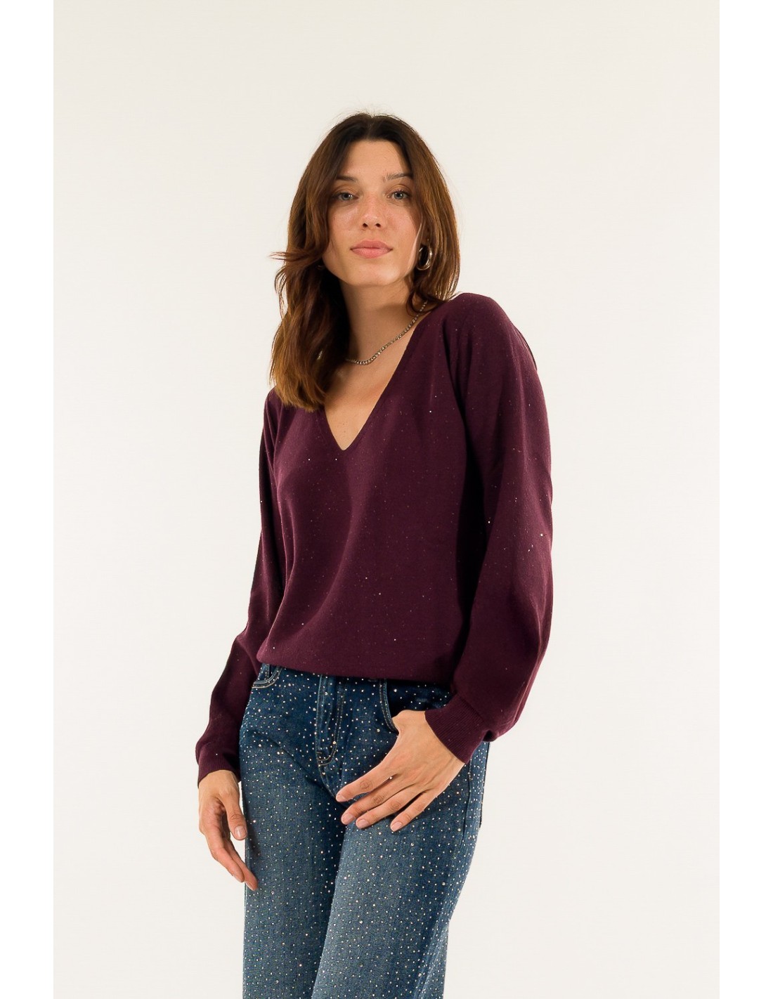 Uma peça de vestuário requintada, tornada única pelos detalhes luminosos e pelo corte decotado que realça delicadamente a feminilidade. Perfeito para dar um toque discreto de elegância a qualquer conjunto, seja para o dia ou para a noite.