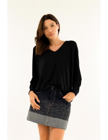 Deixe-se envolver pela suavidade de uma camisola com um corte largo e um decote profundo, perfeita para um look sofisticado e sem esforço. Uma peça versátil e intemporal, capaz de valorizar qualquer outfit com graciosidade e naturalidade.