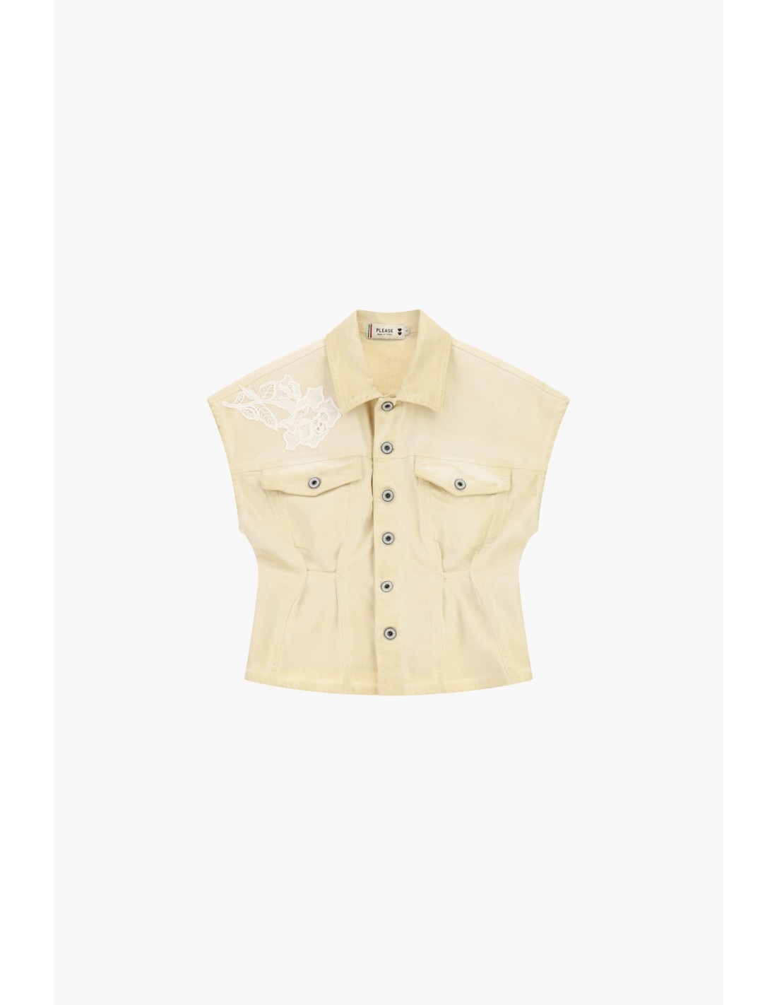 Casaco De Ganga Curto Com Ombros Largos E Detalhes Bordados Please