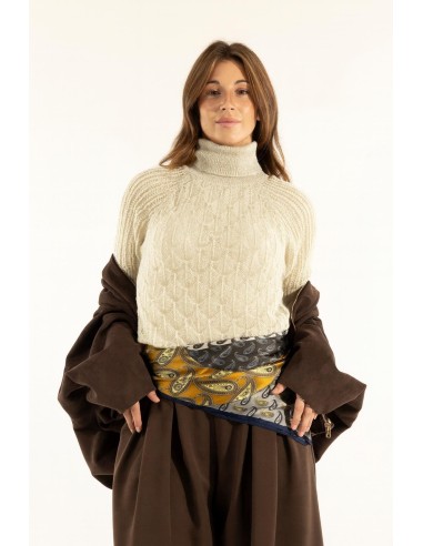 Camisola de gola alta assinada Kontatto, corte com caimento suave que valoriza sem marcar. Malha trabalhada com pontos vazados em relevo em fio macio com toque leve e confortável. Gola envolvente e mangas curtas com punho canelado para um toque moderno. Perfeita com calças de alfaiataria no escritório ou com denim para o dia a dia.