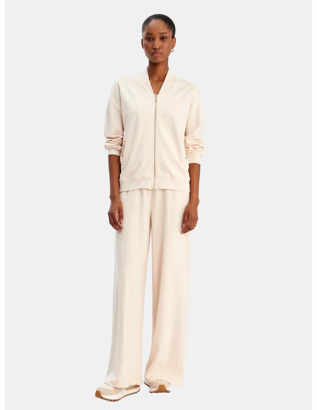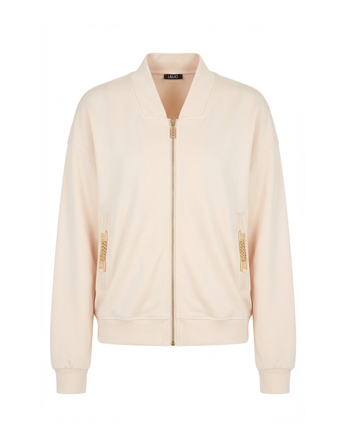 Sweatshirt em jersey ponto Milano, bolsos confortáveis, detalhes em corrente, ecossustentável.