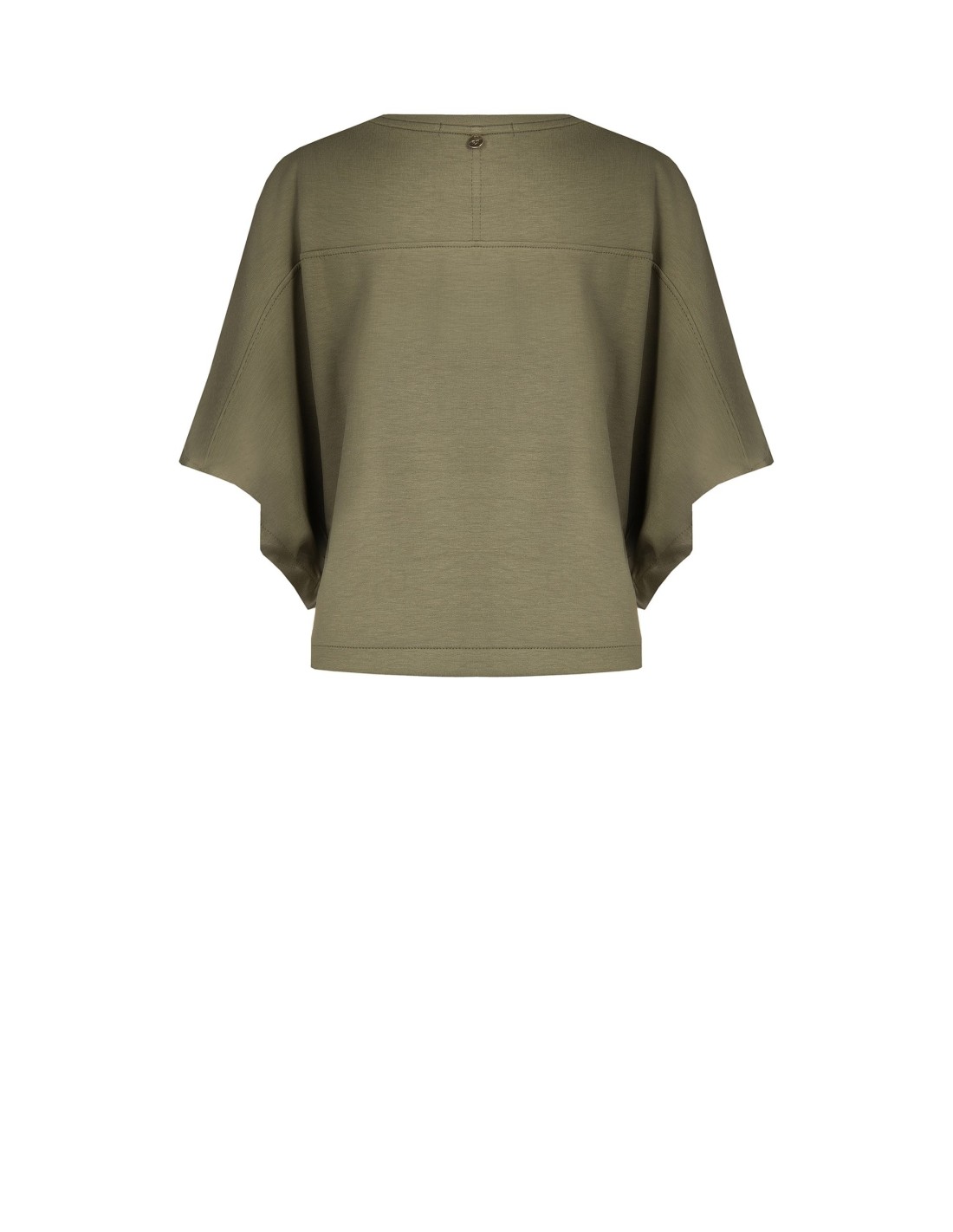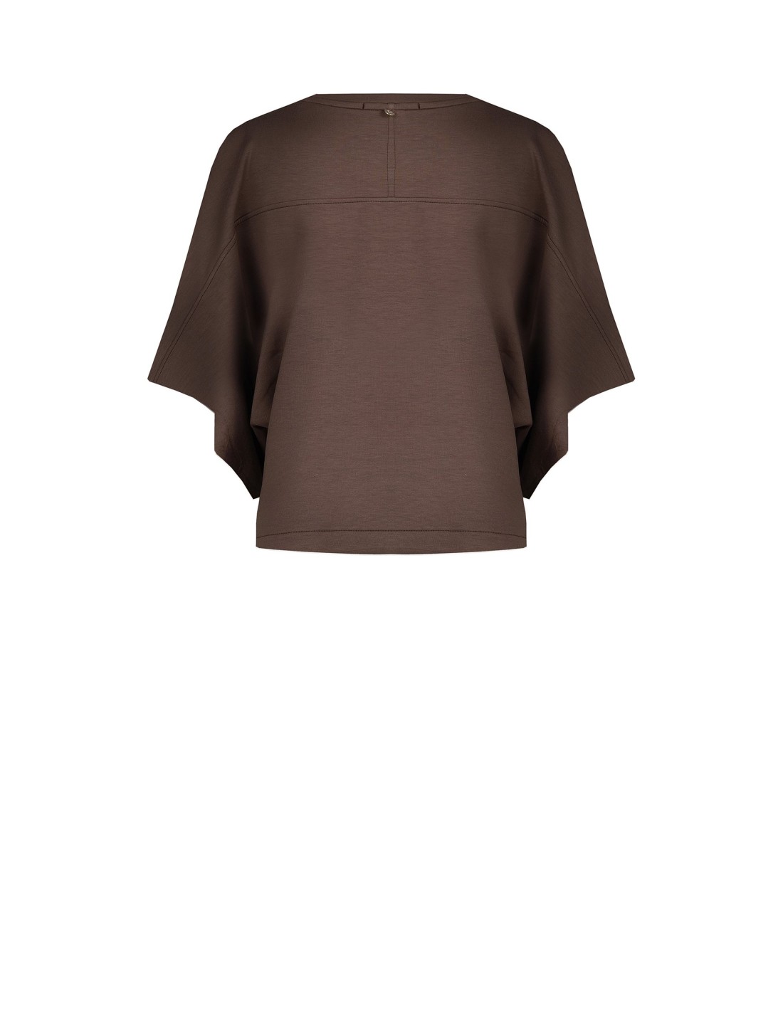 Camisola curta de volume macio e descontraído em mistura de viscose fluida, que roça a silhueta sem marcar. Mangas amplas com efeito kimono e decote redondo limpo com botão na parte de trás. Perfeita com calças de perna larga ou denim para o escritório informal e lazer.