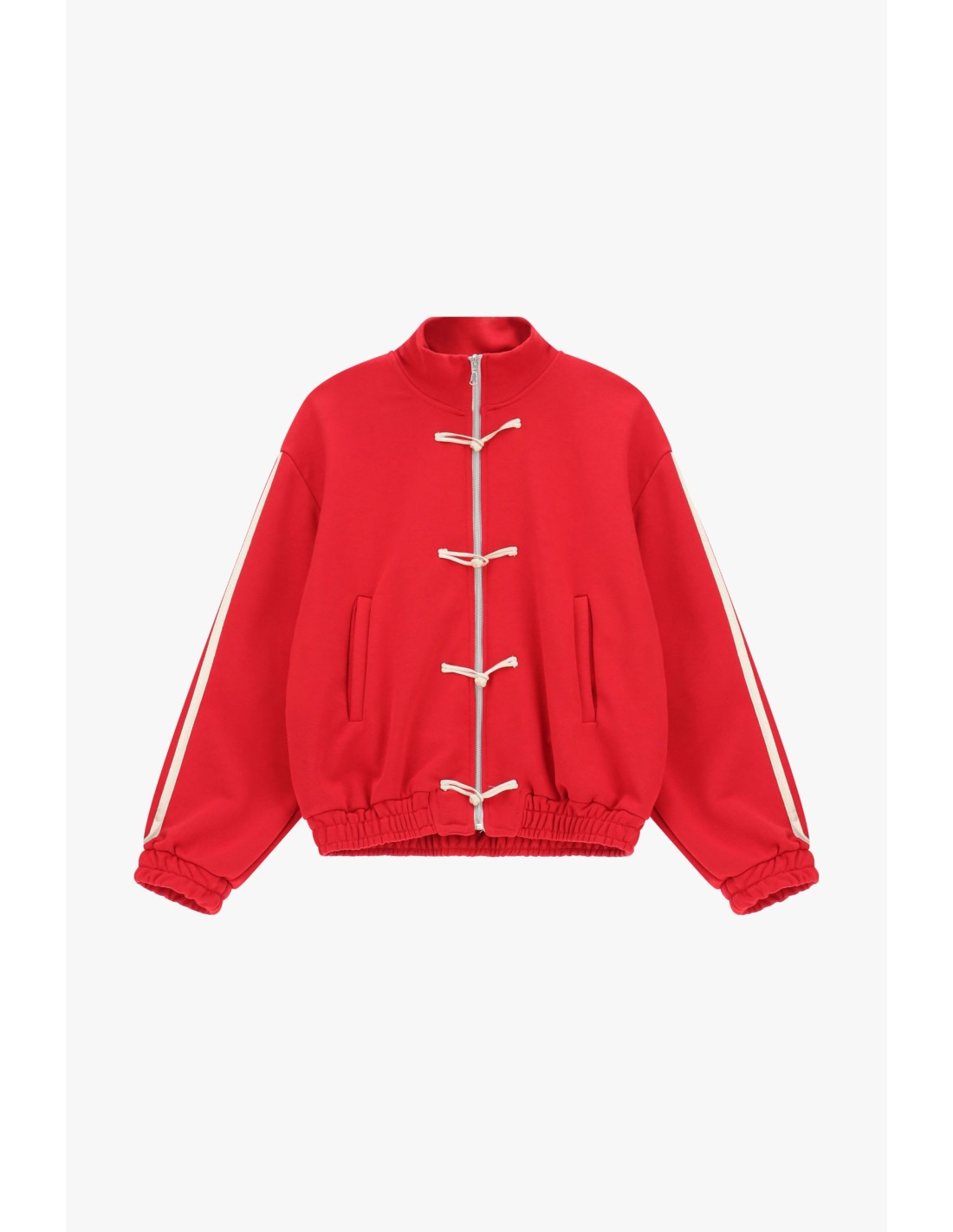 Sweat com fecho frontal e cordões decorativos