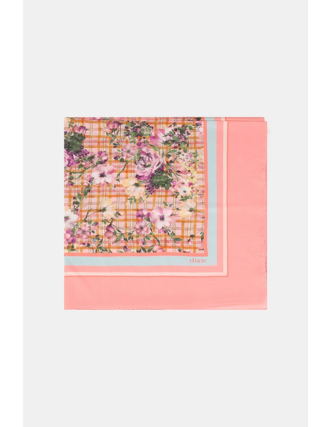 Foulard Quadrado Com Padrão Floral E Borda Contrastante Dixie