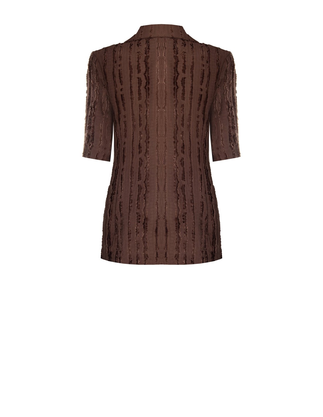 Casaco exterior com um corte justo e feminino, em mistura de viscose com textura macia e às riscas, com refinados efeitos desfiados. O revers de alfaiate e o fecho de um botão alongam a silhueta com conforto e versatilidade. Perfeito no escritório, para o aperitivo ou em ocasiões do dia a dia.