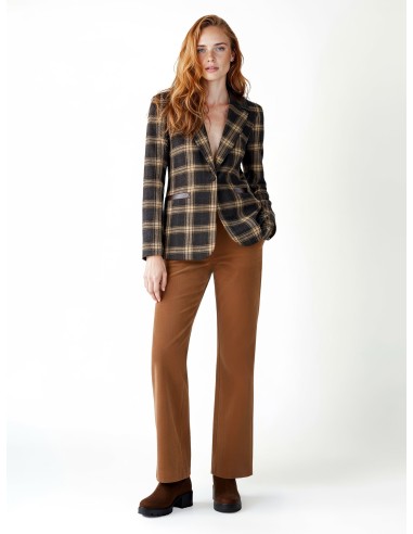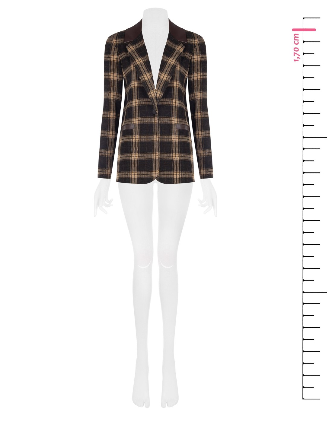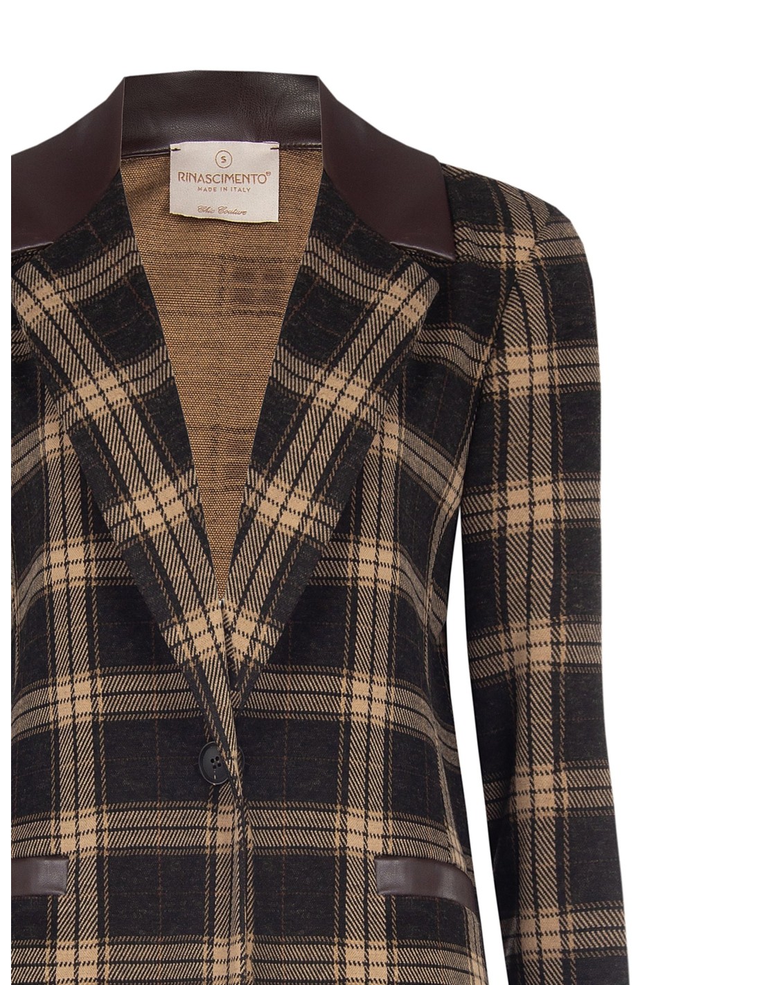 Blazer Em Tecido Jacquard Xadrez Com Detalhes Em Pele Sintética Rinascimento