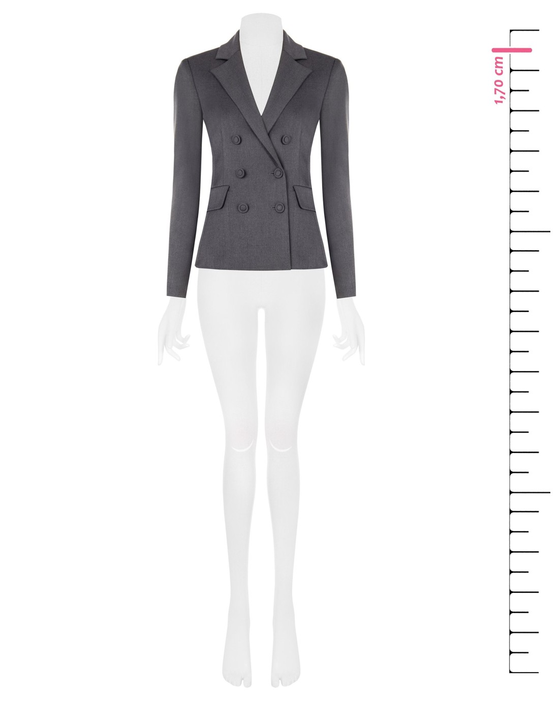 Blazer de duplo peito com corte acinturado em poliviscose compacta e ligeiramente elástica, que desenha uma silhueta feminina sem prescindir do conforto. Botões forrados e bolsos com aba definem o look, perfeito para escritório, reuniões e encontros after-work.