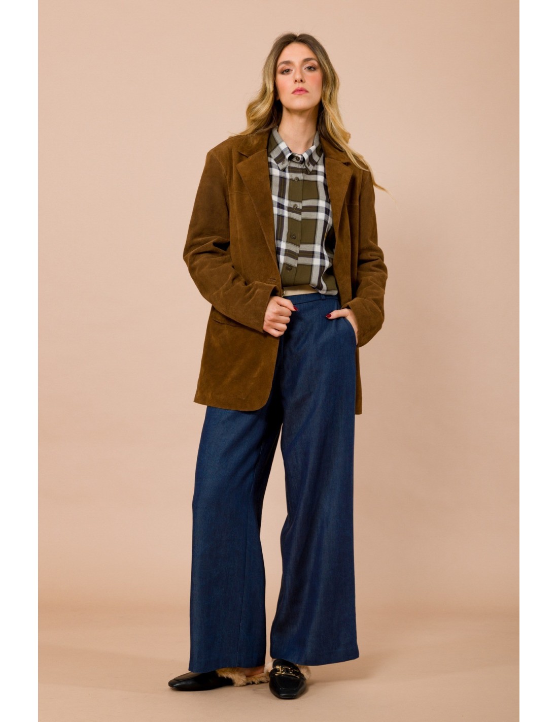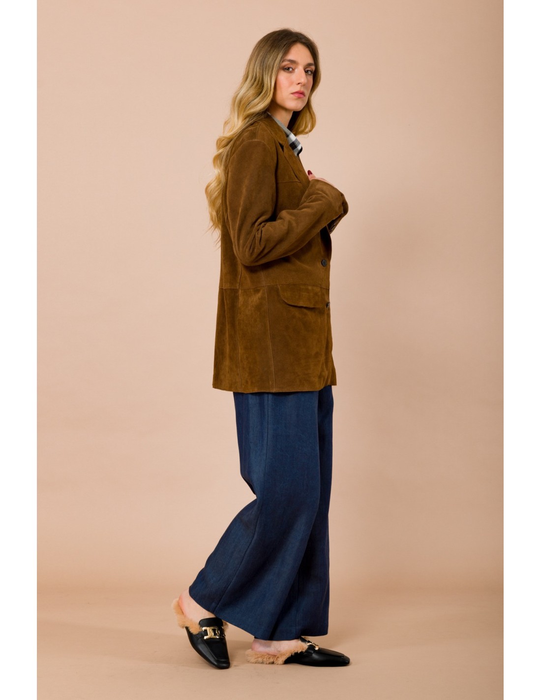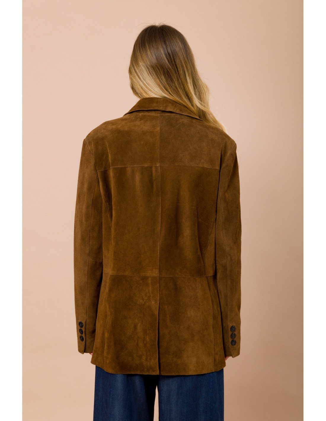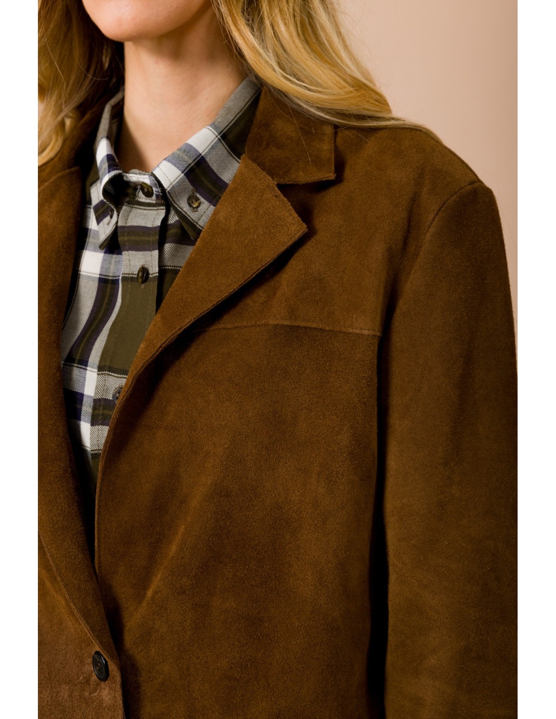 Blazer Maryley de corte direito e descontraído, em crosta macia com efeito aveludado para um conforto que acompanha os movimentos. Corte vivo e bolsos de aba definem a silhueta; fecho de dois botões. Versátil para o dia: perfeito com denim para o dia a dia ou com calças de alfaiataria para o escritório.