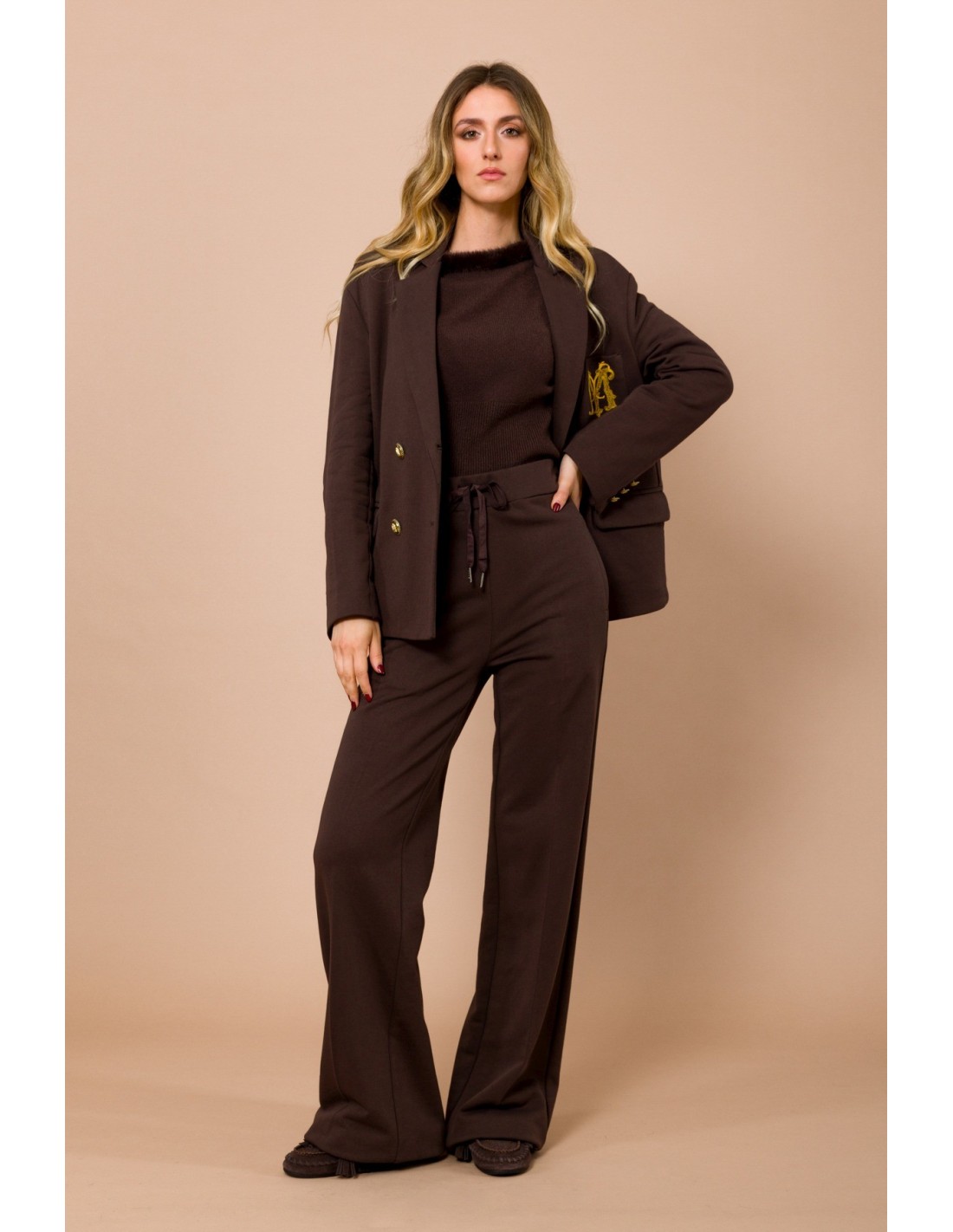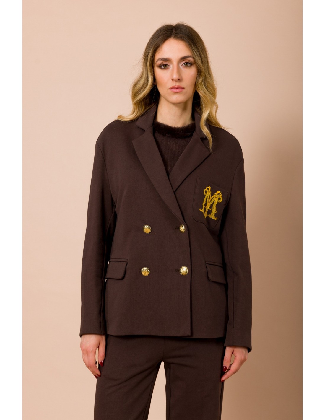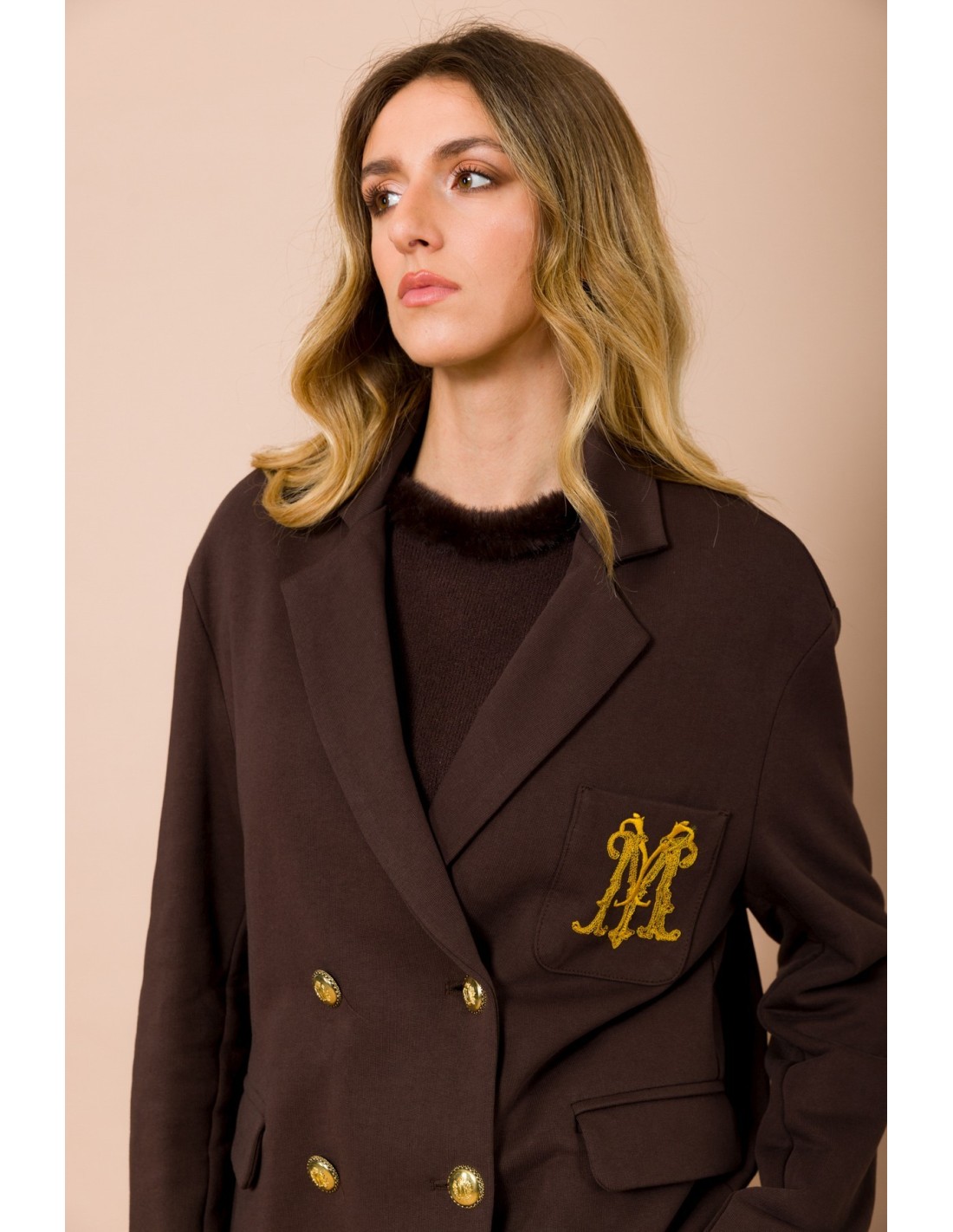 Blazer Maryley de corte suave e fit oversize: cai fluido, define a silhueta sem apertar. Confeccionado em felpa compacta, agradável na pele. De abotoamento duplo com botões metálicos e bolsinho com bordado monograma. Perfeito para o escritório com calças wide, versátil para o tempo livre com denim e ténis.
