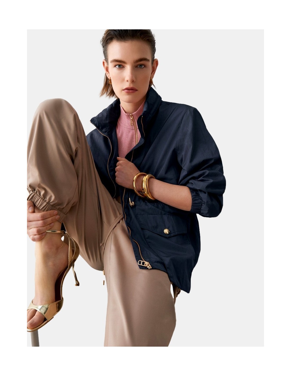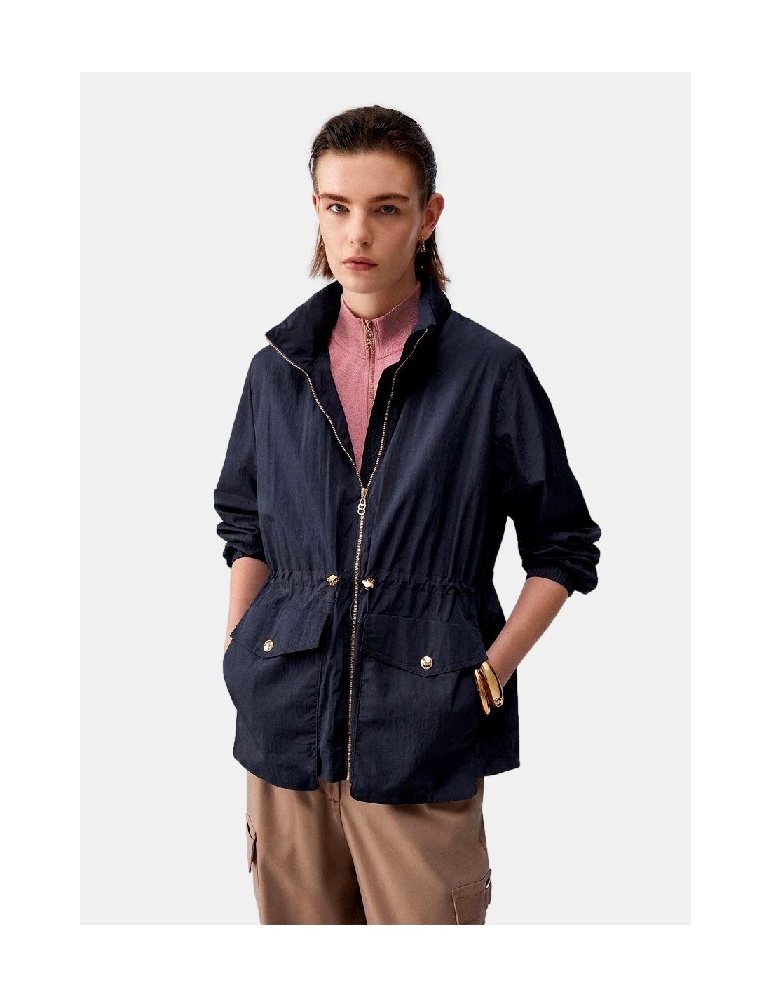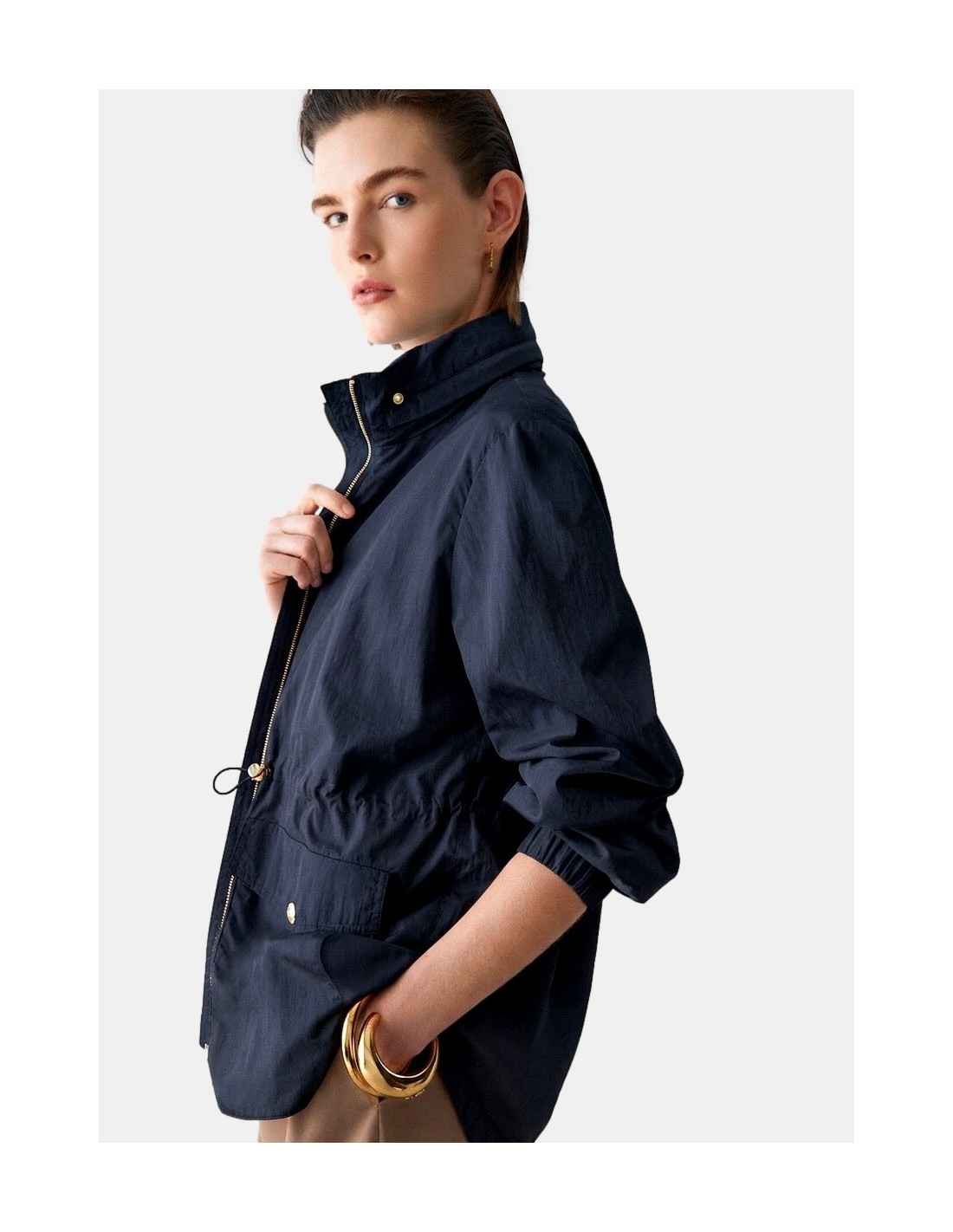 Casaco leve impermeável, bolsos maxi, fecho com zip, modelo packable para levar sempre contigo.