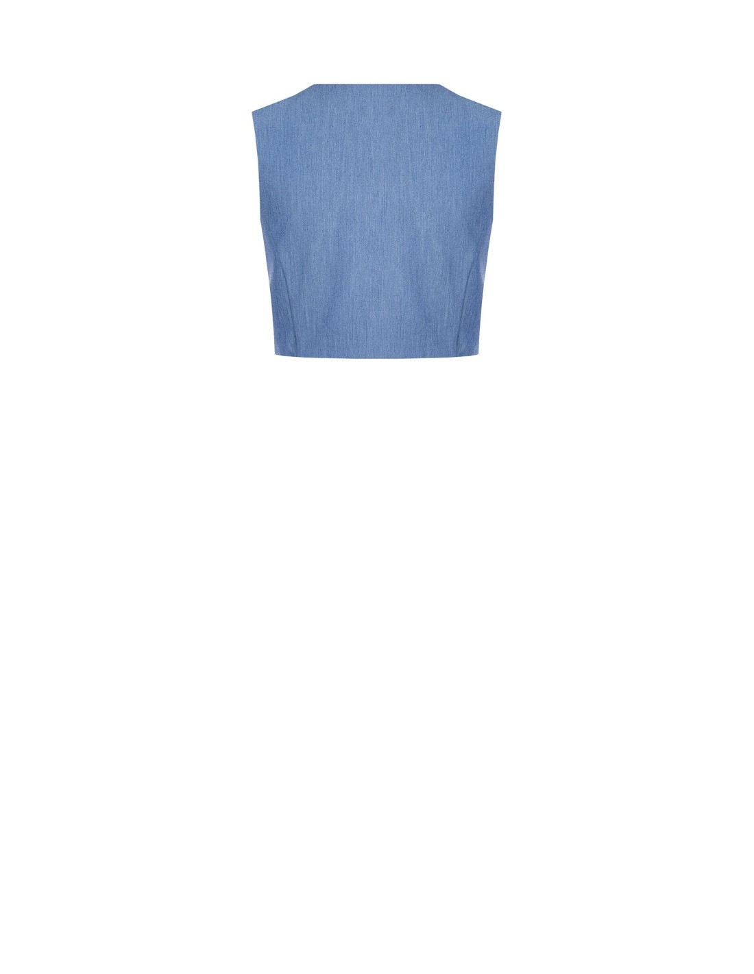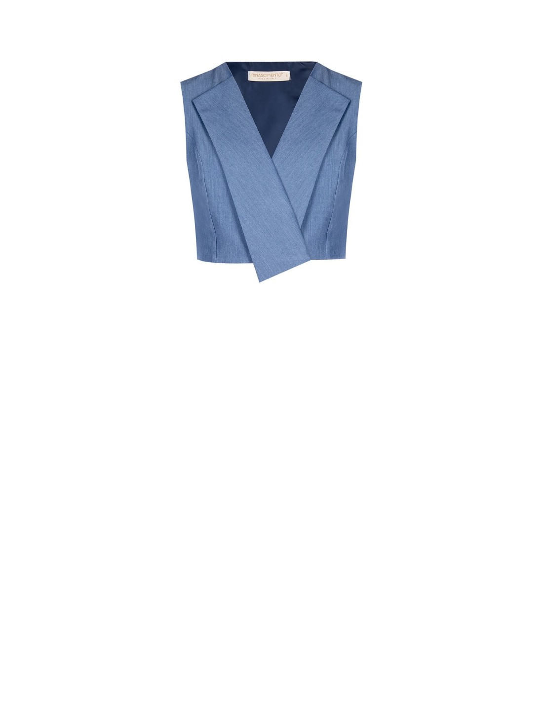 Micro casaco de alfaiataria de corte curto, de linha ajustada que realça a cintura. Em tecido com efeito denim leve, com amplas lapelas e fecho cruzado frontal que alonga a silhueta. Perfeito sobre camisas ou tops para o escritório, o aperitivo e o fim de semana.