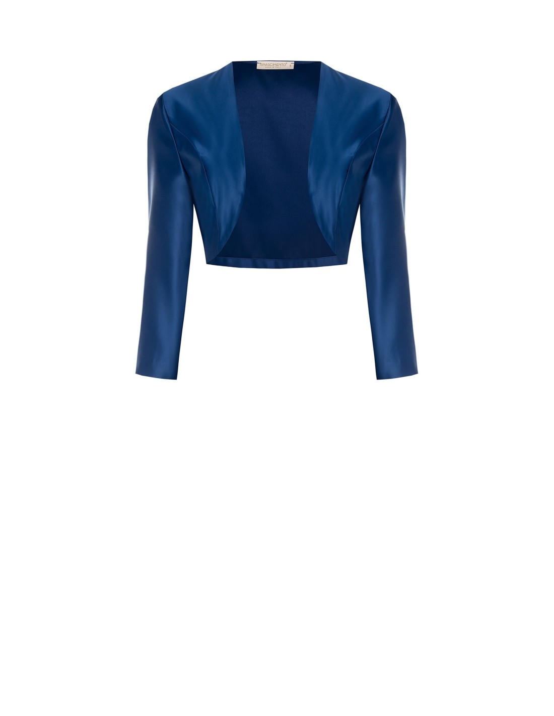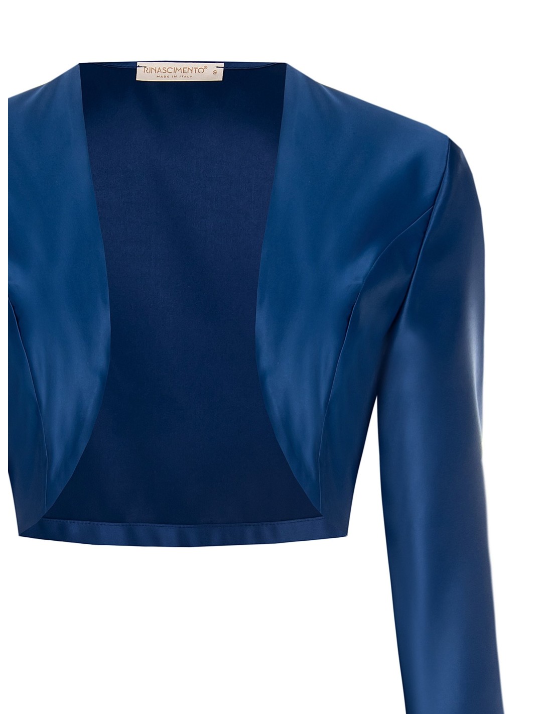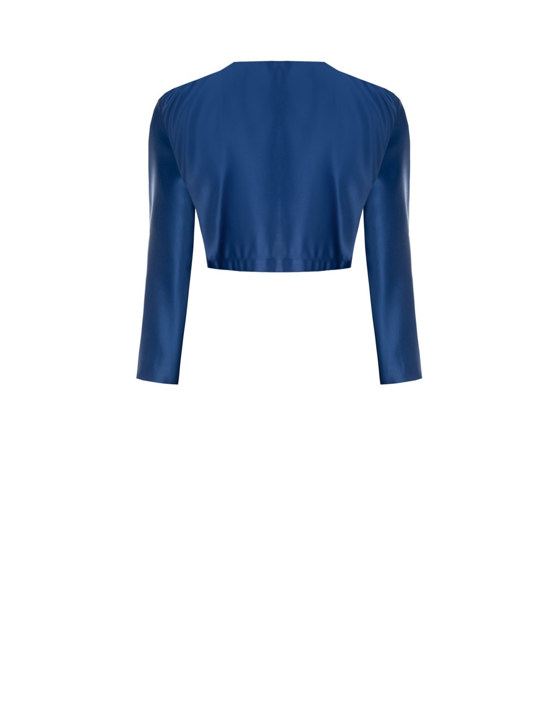 Coprispalle curto de corte justo, em tecido acetinado que acaricia as formas sem marcar. O design com abertura frontal alonga a silhueta e deixa espaço para o vestido, enquanto as mangas compridas acrescentam sofisticação. Perfeito para vestidos de cerimónia e festas.