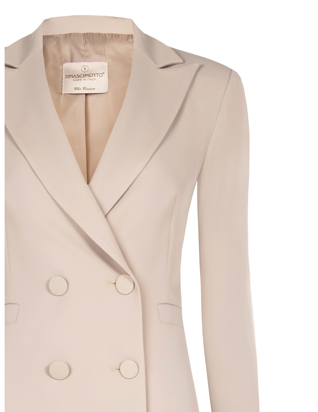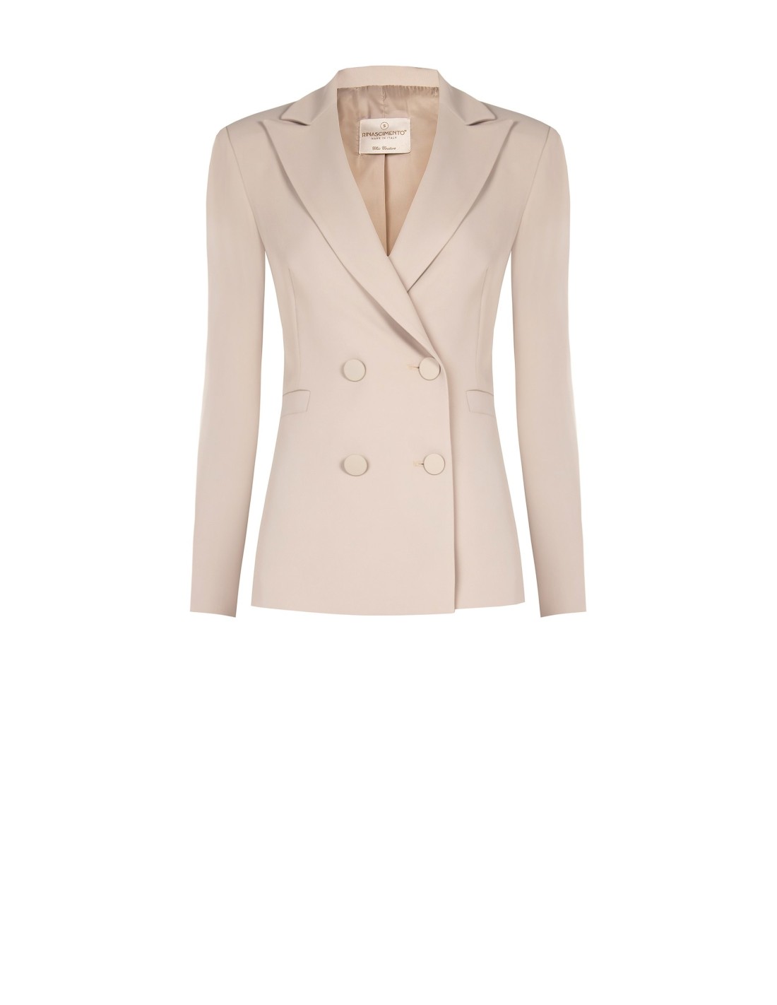 Blazer Rinascimento de corte justo que esculpe a silhueta, em tecido fluido e ligeiramente stretch com interior forrado para um conforto impecável. De abotoamento duplo com botões revestidos e lapela em bico. Perfeito com calças ou vestidos para escritório, reuniões e ocasiões especiais.