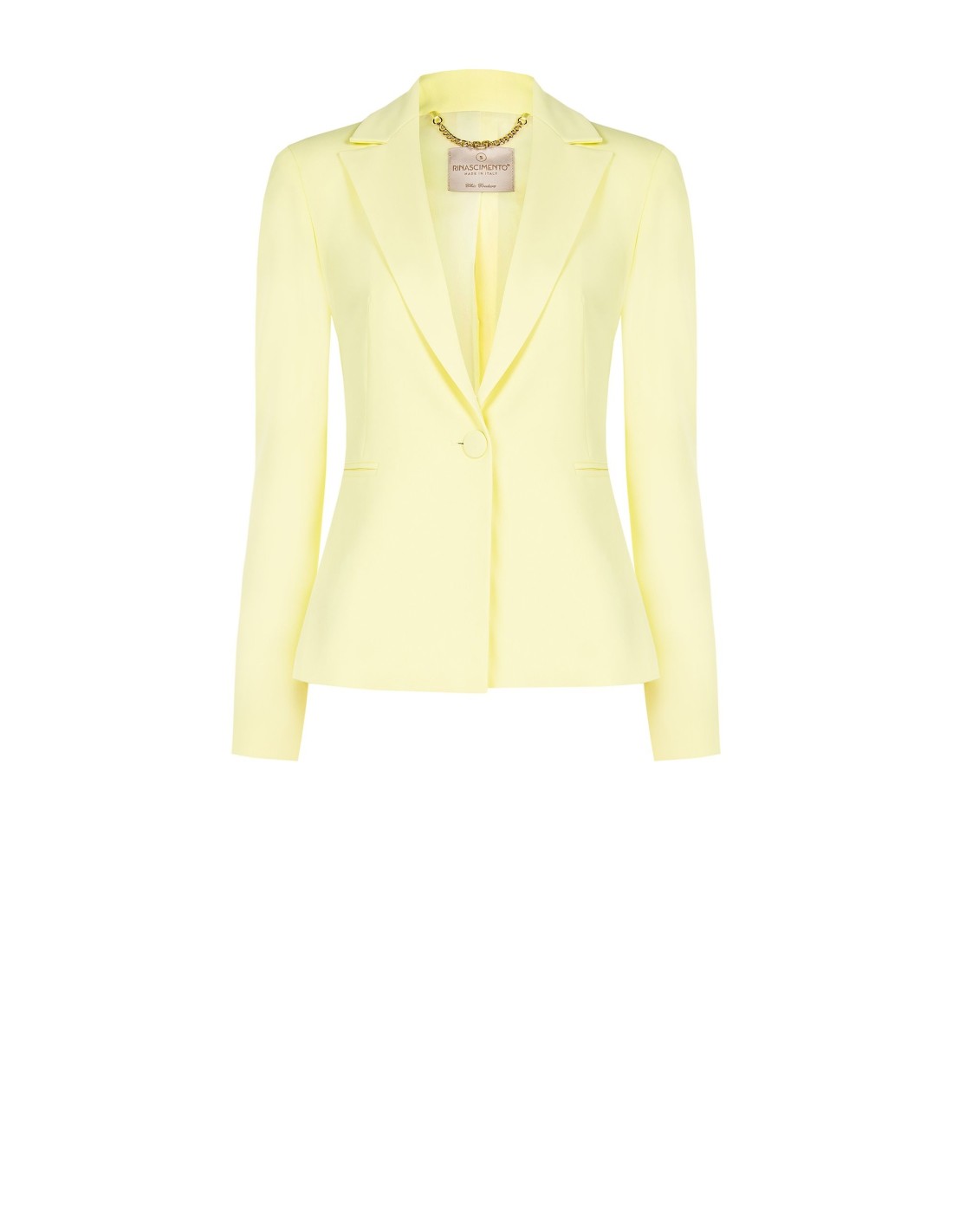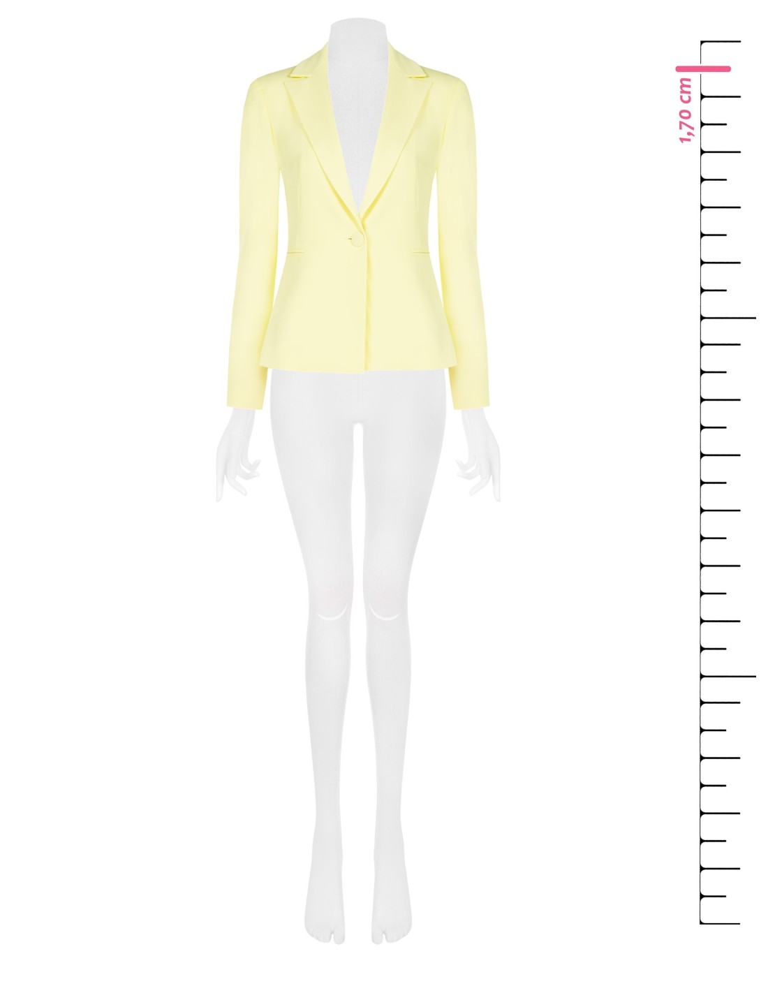 Blazer Rinascimento com corte modelante que valoriza a cintura, em tecido crepe macio com toque fluido. O botão forrado e a corrente interna dourada acrescentam um toque de joia. Perfeito com calças ou vestido para escritório, reuniões e ocasiões especiais.