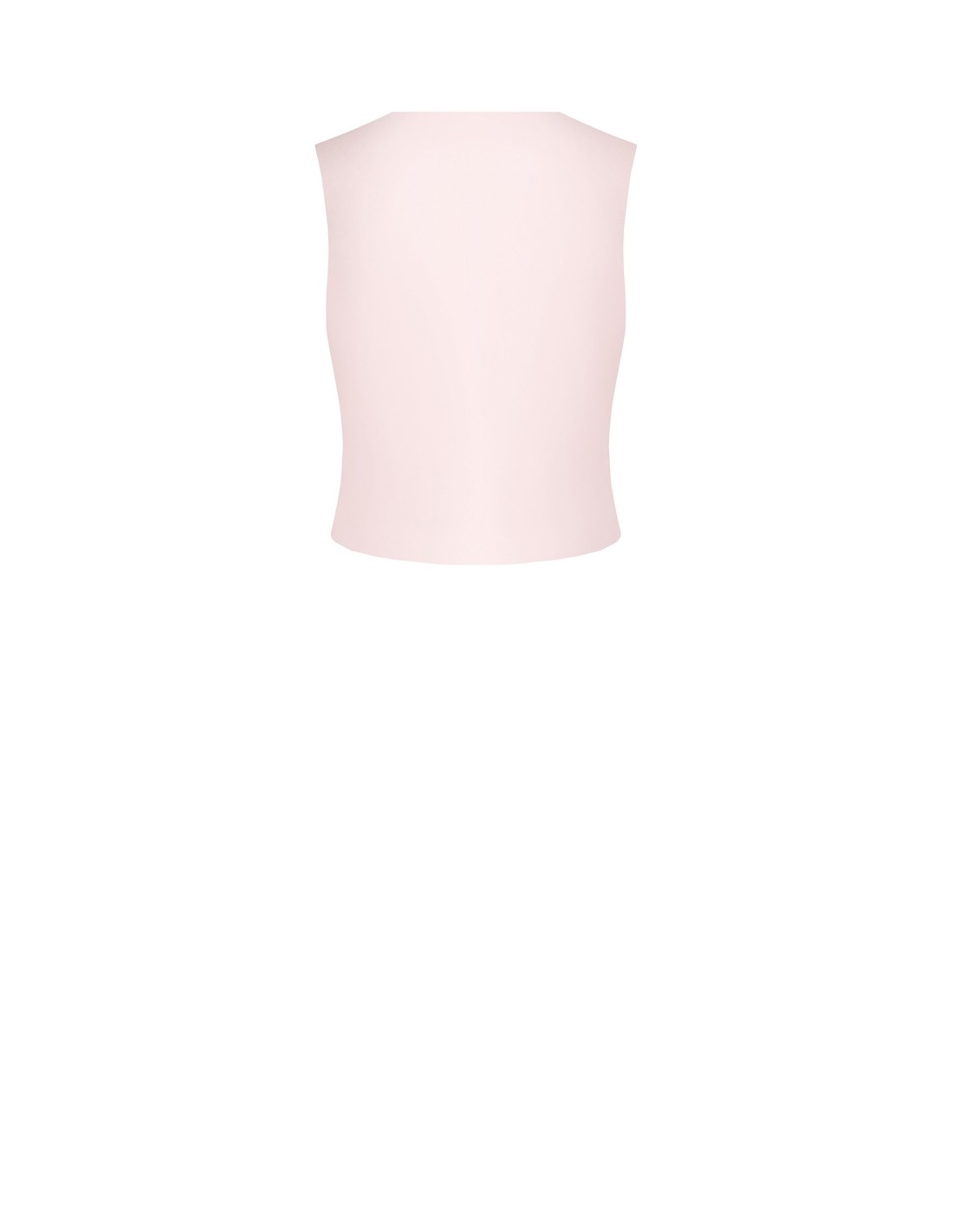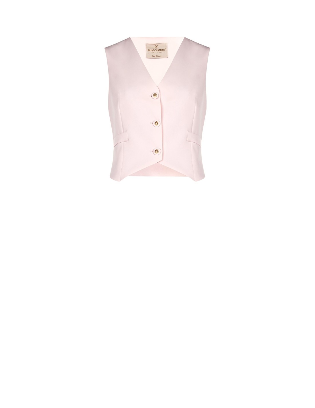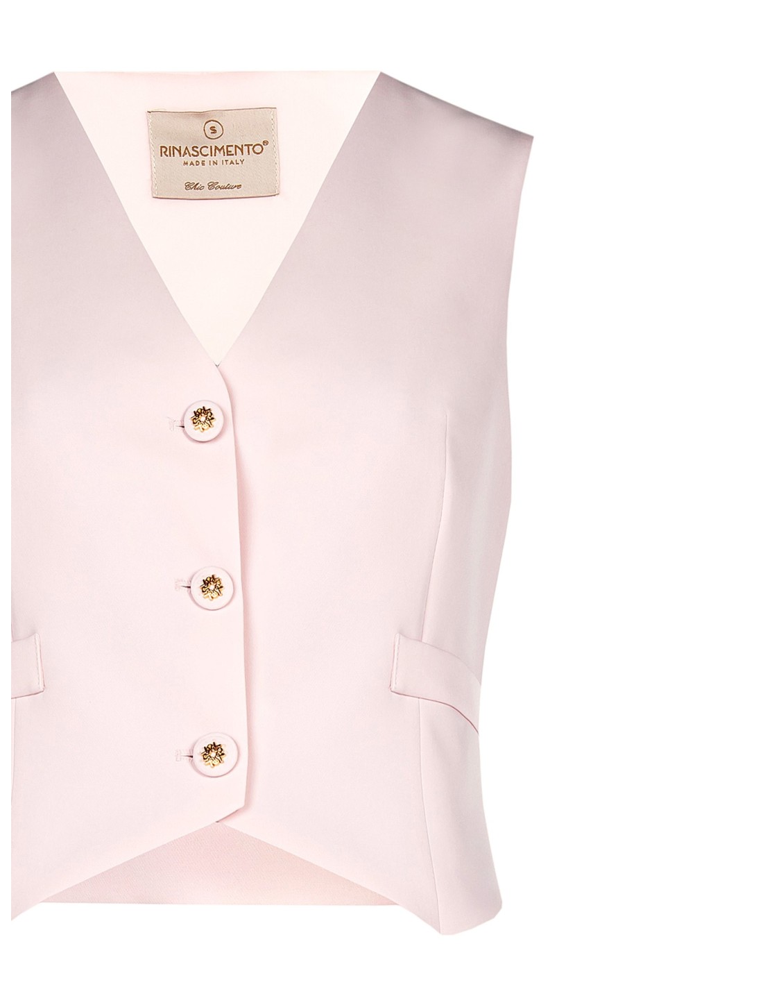 Top de alfaiataria curto, de corte ajustado que realça a cintura. Confeccionado em tecido liso e estruturado, apresenta decote em V profundo, bainha pontiaguda e botões tipo joia. Perfeito sobre camisa ou bralette, do escritório ao aperitivo.