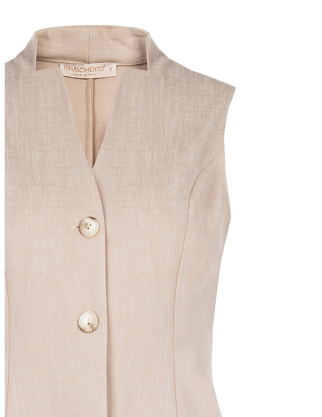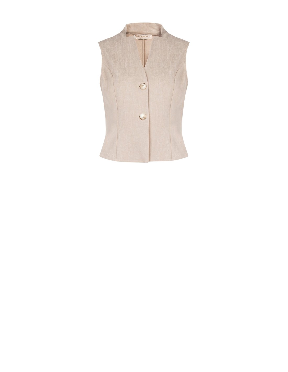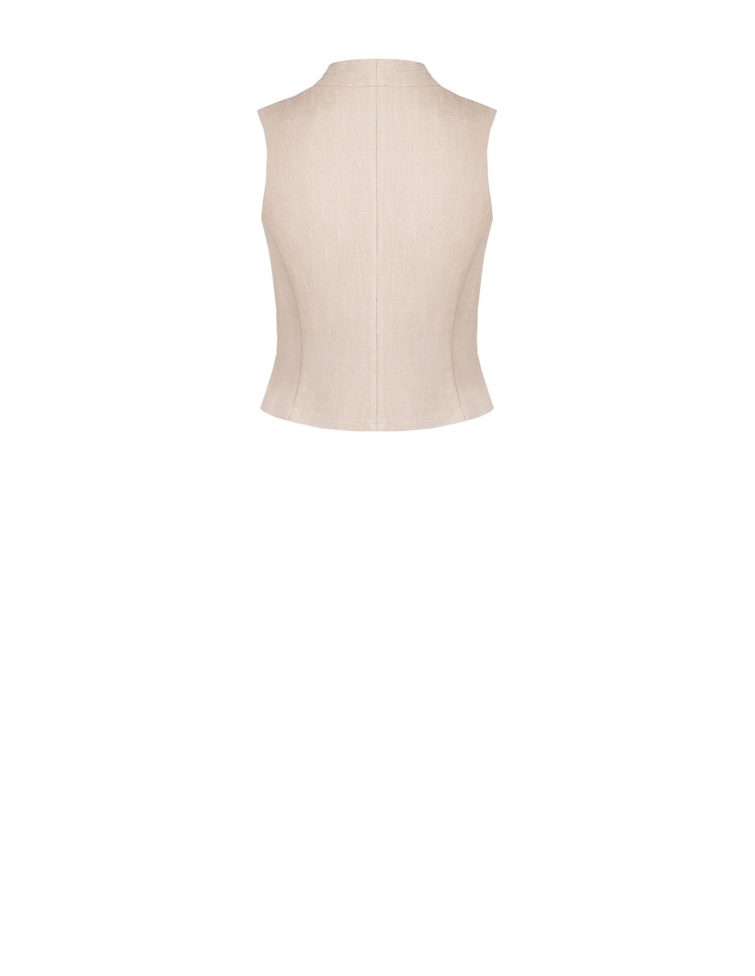 Colete de corte justo que esculpe a cintura, em tecido leve com efeito linho, perfeito para usar também sobre a pele. Decote em V com gola à coreana e maxi botões frontais. Ideal para o escritório ou para completar looks do dia a dia com carácter sofisticado.