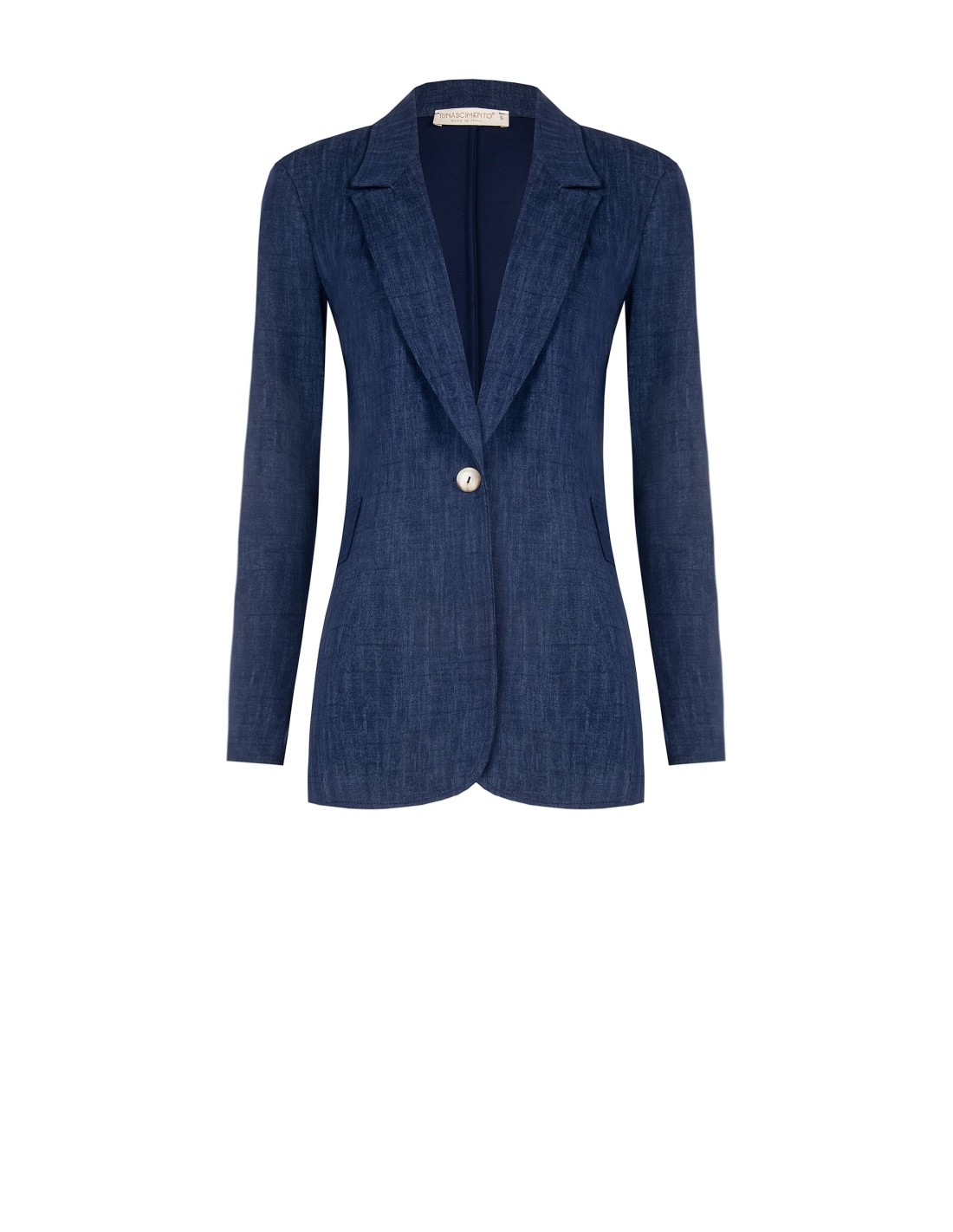 Blazer Rinascimento com um corte justo que alonga a silhueta, em tecido leve com efeito denim e toque macio. Revers clássicos, fecho de um só peito com botão maxi e bolsos embutidos essenciais. Perfeito para o escritório e para completar os seus looks do dia a dia com elegância discreta.