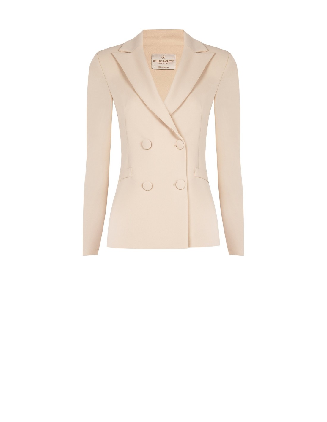 Blazer Rinascimento de corte justo que esculpe a silhueta, em tecido fluido ligeiramente elástico para um conforto quotidiano. Cruzado com botões forrados e lapela afilada conferem carácter. Perfeito sobre um tailleur de escritório ou para sofisticar um denim noturno.