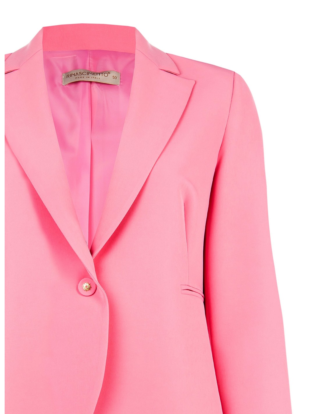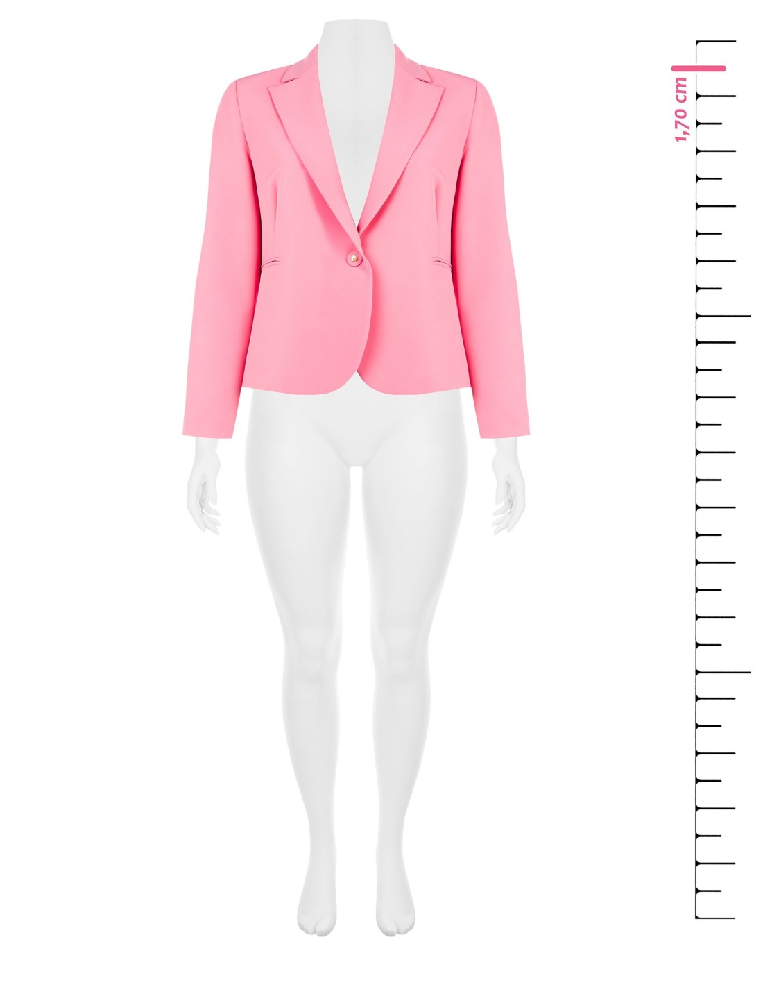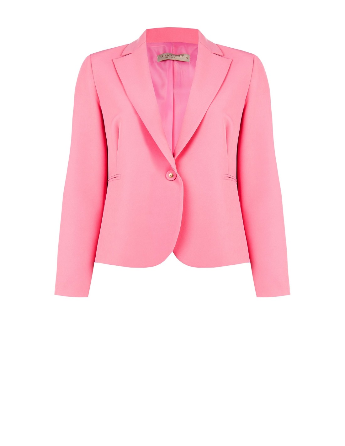 Blazer curto de corte ligeiramente entalhado que valoriza as curvas, em tecido liso e confortável com ligeira componente stretch. Revers clássico, fecho com um botão joia e bolsos de vivo. Perfeito com calças ou vestidos para escritório, reuniões ou aperitivos.