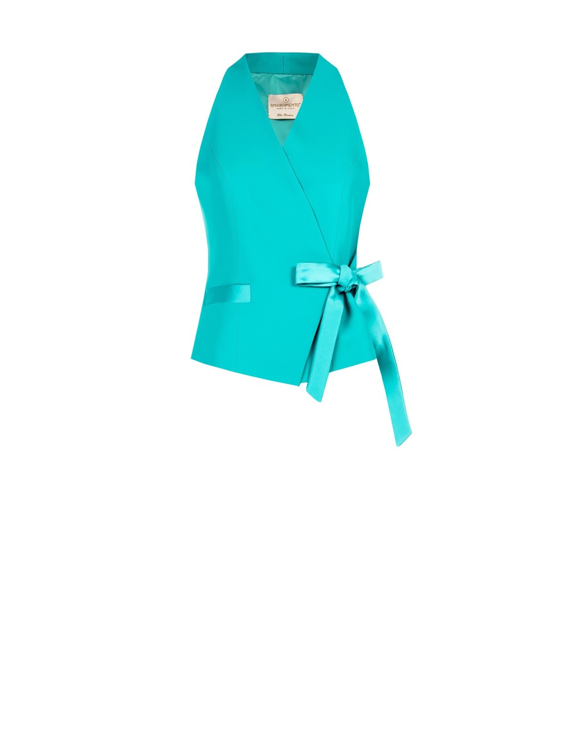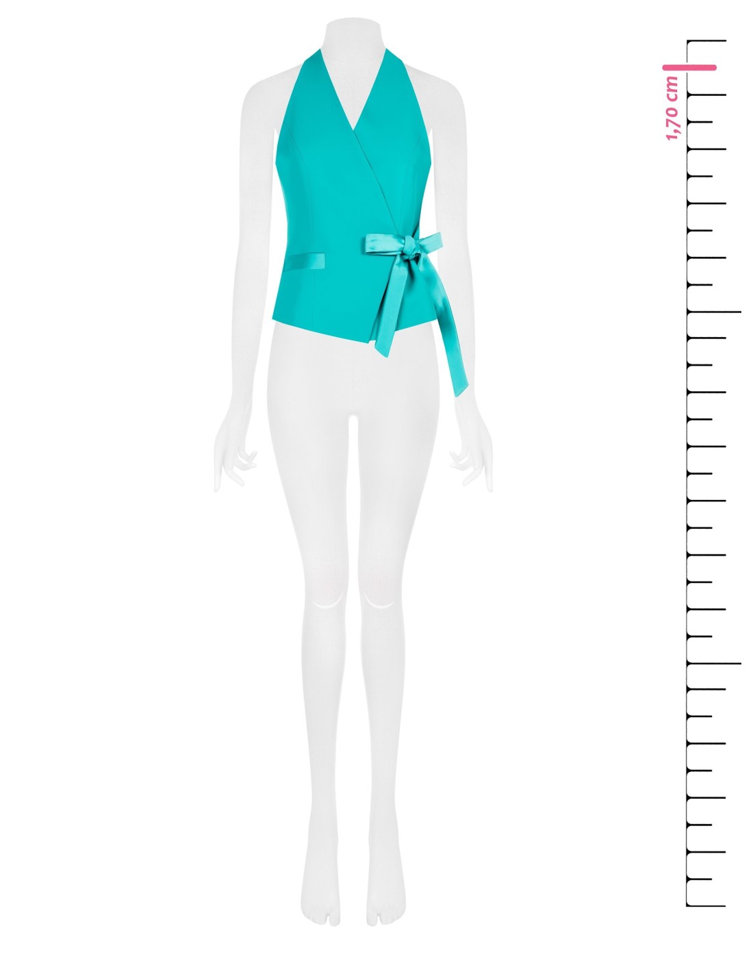 Top sem mangas com um corte envolvente e feminino, confeccionado em tecido fluido de toque liso e confortável. O decote profundo e o fecho cruzado com fita na cintura valorizam a silhueta com naturalidade. Perfeito para o escritório, um aperitivo ou uma festa requintada.