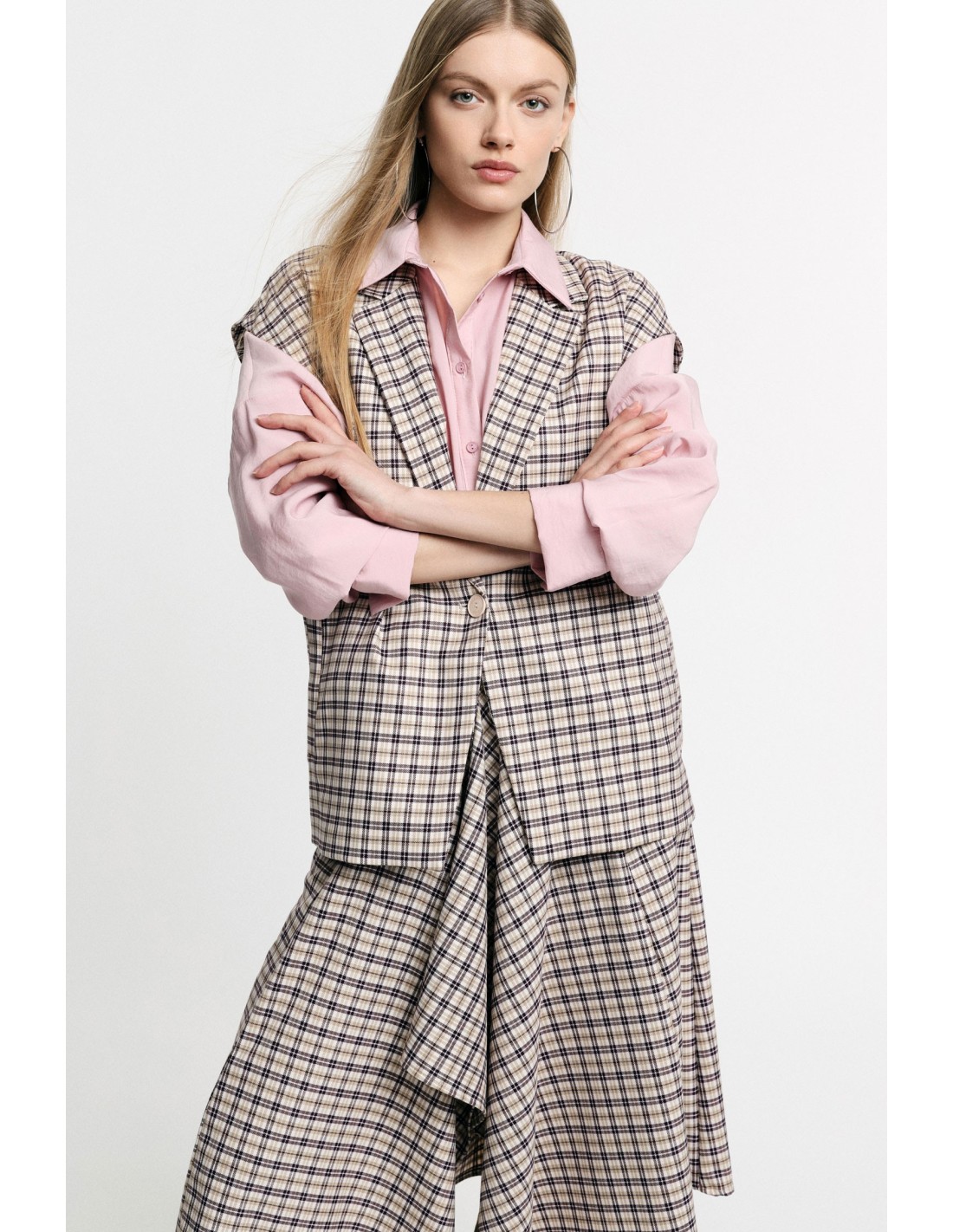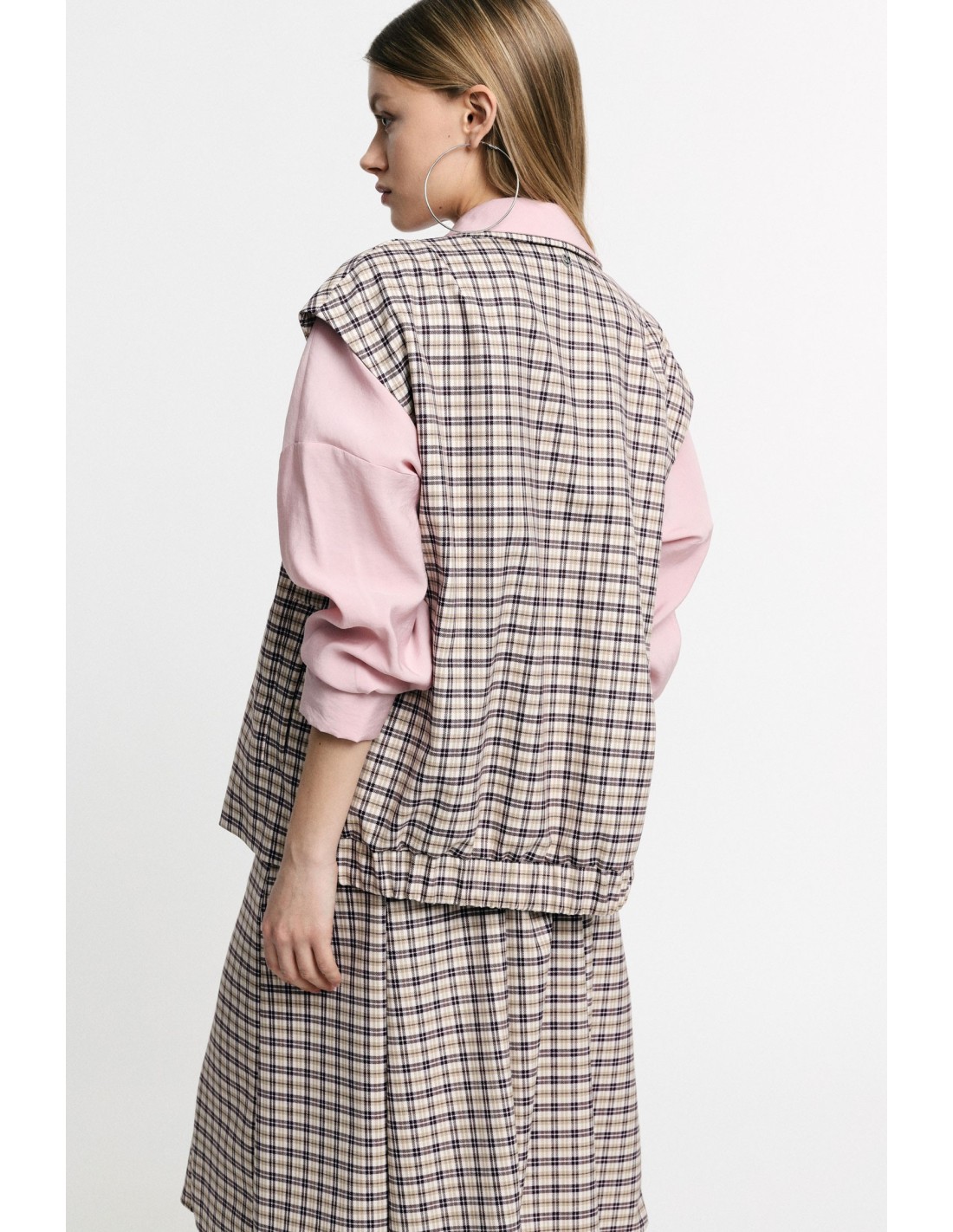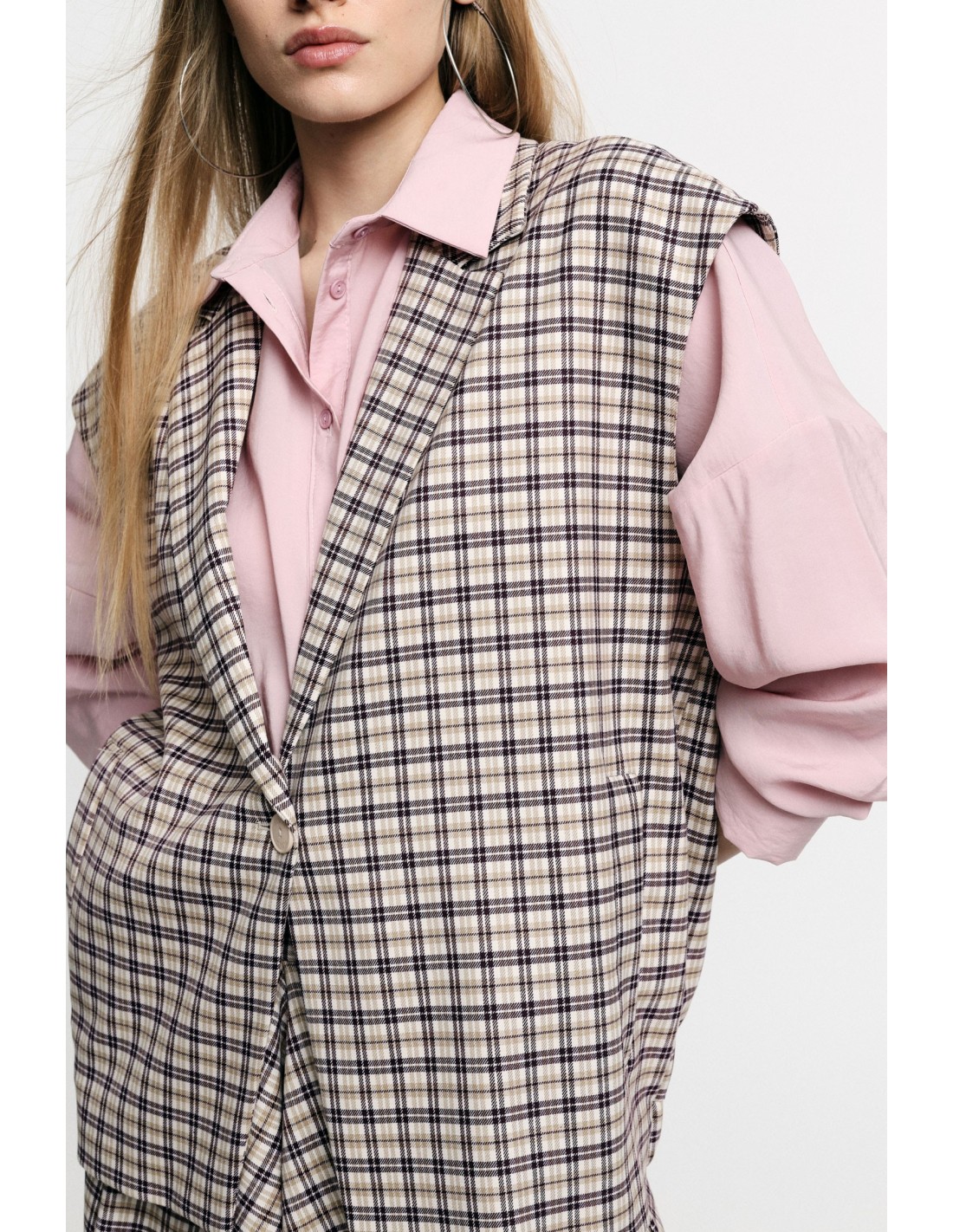 Colete com padrão xadrez e fecho de botão