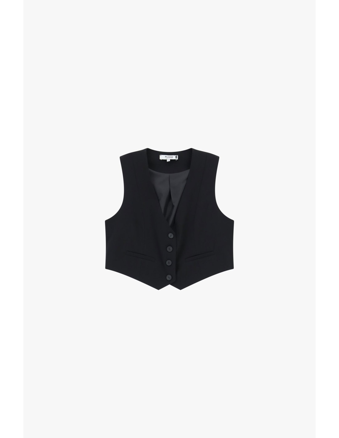 Colete Cropped Com Botões E Bolsos Frontais Please