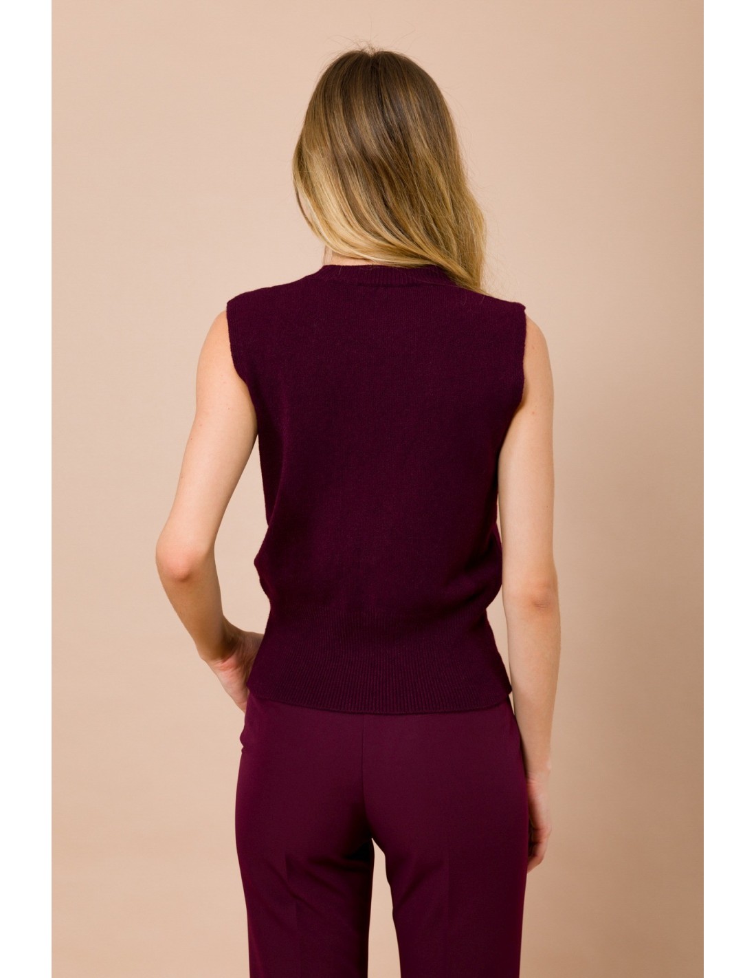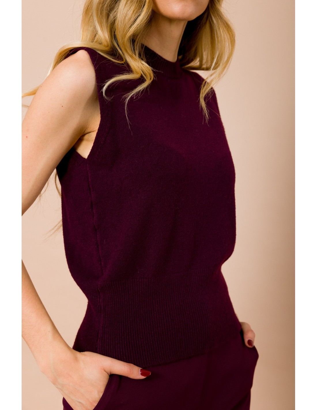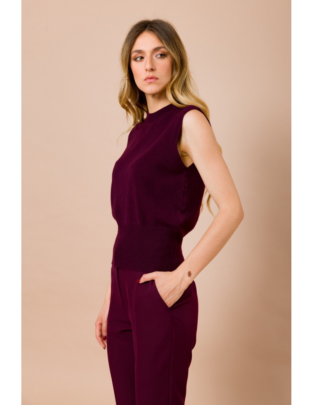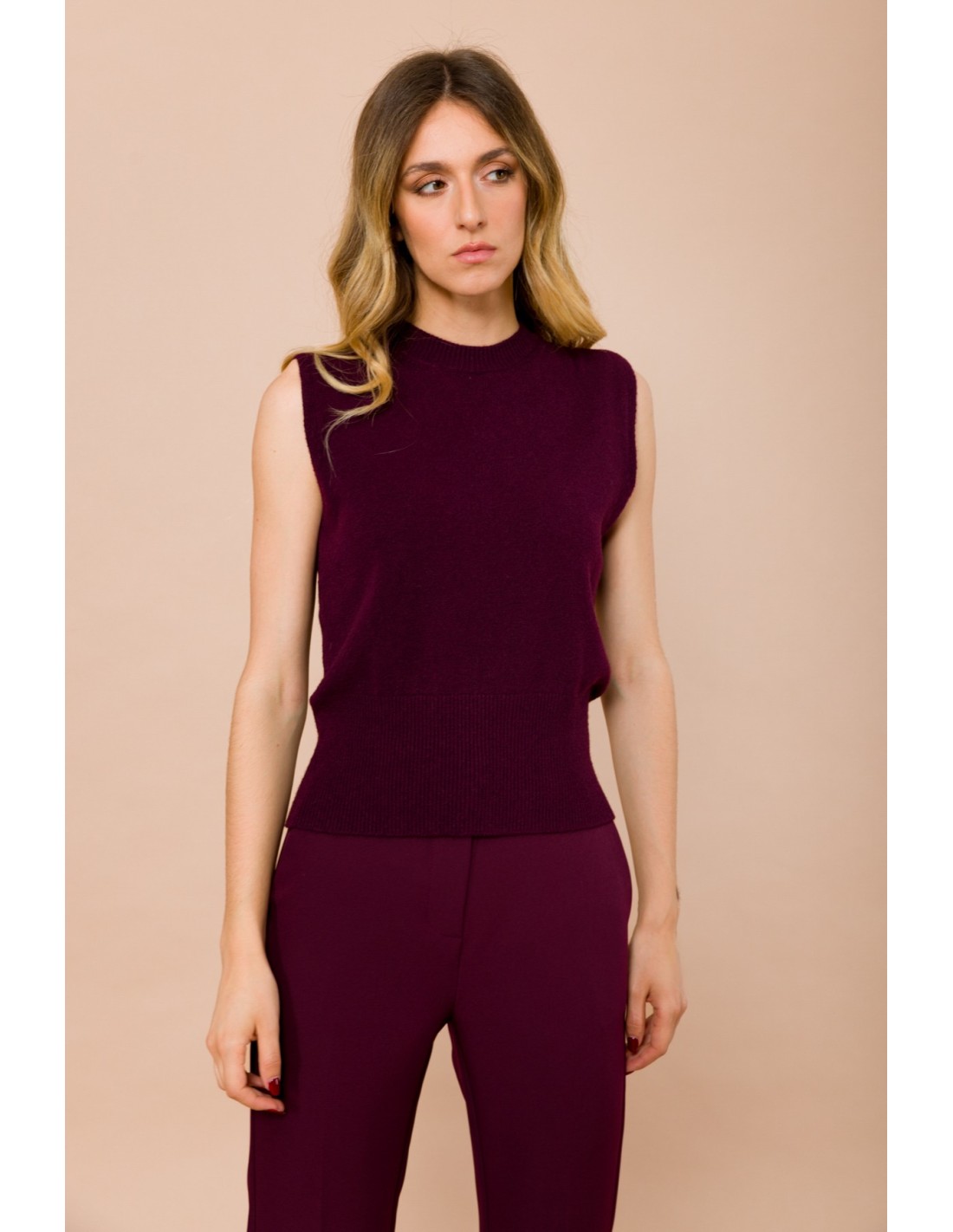 Maryley apresenta um top sem mangas com um corte regular que valoriza a cintura graças à ampla barra canelada. Malha macia e quente em fio fino, agradável na pele. Decote redondo simples e cava acabada para sobreposições fáceis. Perfeito para o escritório com blazer, também versátil para o look smart do dia a dia.