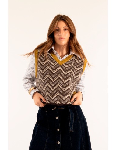 Camisola sem mangas Kontatto, corte direito e confortável. Tricot jacquard de toque macio com bordos em canelado que definem a silhueta. Decote em V para sobreposições impecáveis e padrão chevron em contraste. Perfeita sobre camisa para o escritório ou sobre t-shirt no tempo livre, acrescenta personalidade sem renunciar ao conforto.