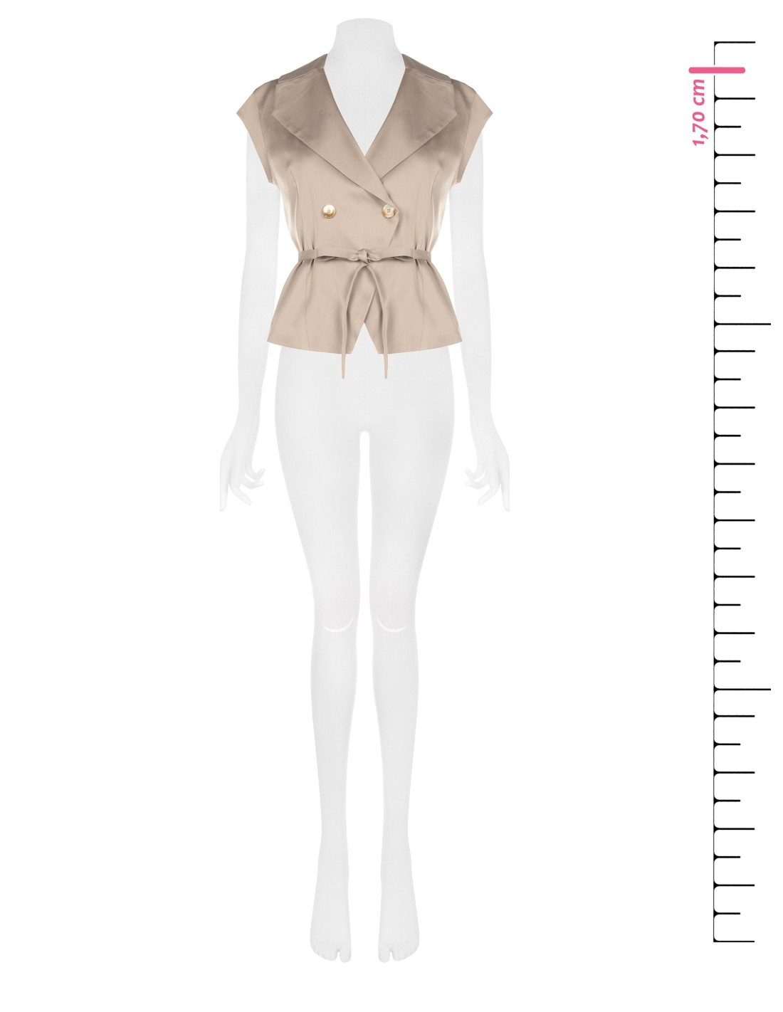 Gilet com um corte feminino e definido, em tecido fluido com textura lisa que acaricia a silhueta com conforto. O pala amplo e o cinto na cintura valorizam as formas, enquanto os botões tipo joia acrescentam carácter. Perfeito para o escritório, um aperitivo ou looks do dia a dia cuidados.
