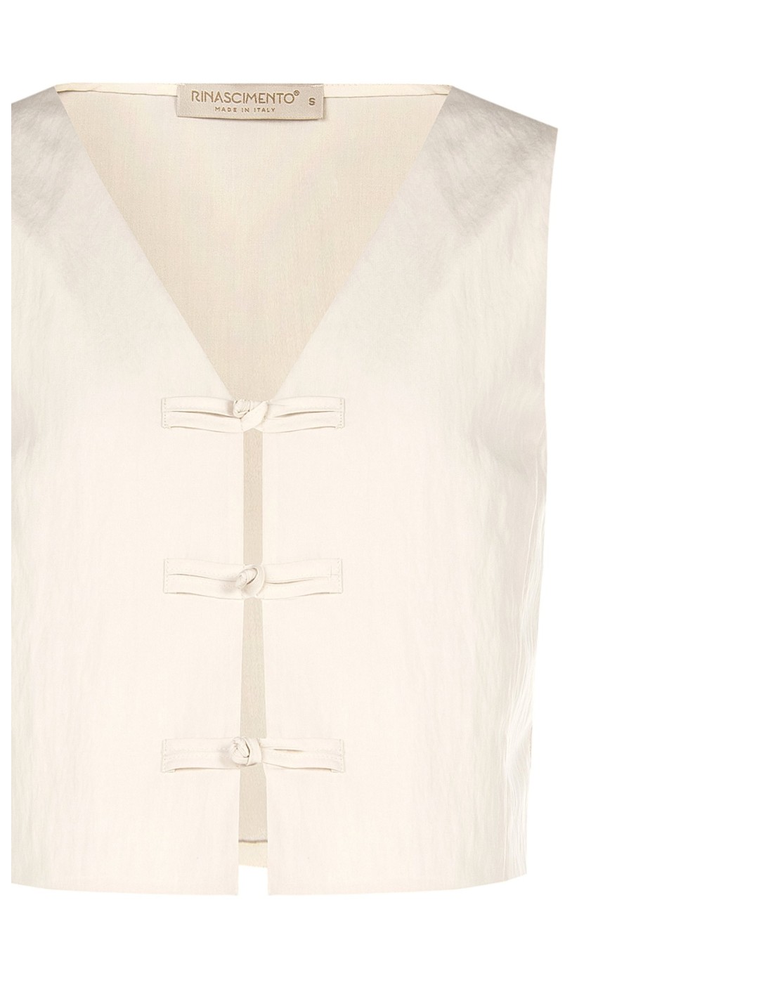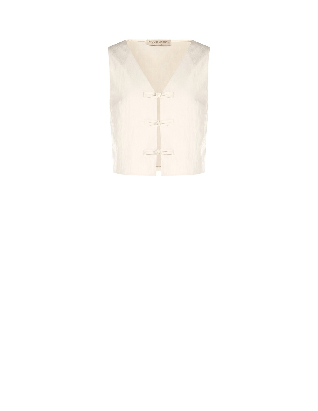Gilet cropped de corte reto, concebido para valorizar a silhueta com leveza. O tecido com textura ligeiramente iridescente proporciona conforto e versatilidade, enquanto o decote em V profundo e os fechos em alamares acrescentam um toque requintado. Perfeito do escritório ao aperitivo.